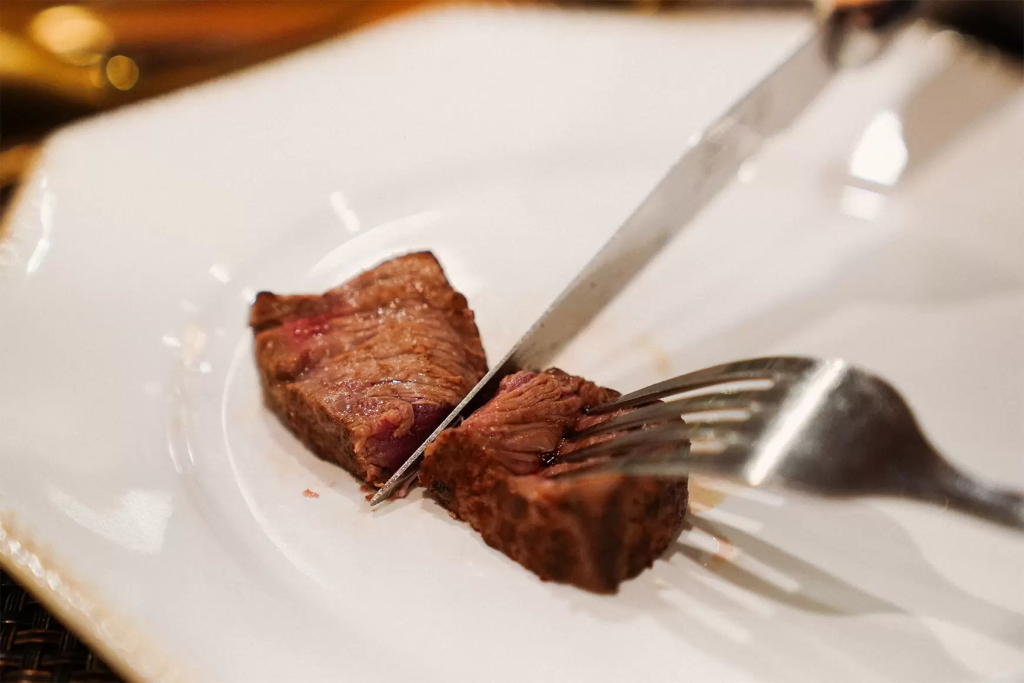 스테이크는 바로 옆에서 시어링을 해주셨어요. 동행과 굽기 취향이 달라도 괜찮습니다. 썰어먹기 좋게 커팅 된 스테이크는 개인화로에서 원하는 만큼 더 구워 굽기를 조절해줄 수 있거든요. 따뜻한 상태의 고기를 먹을 수 있다는 점에서도 좋았어요.