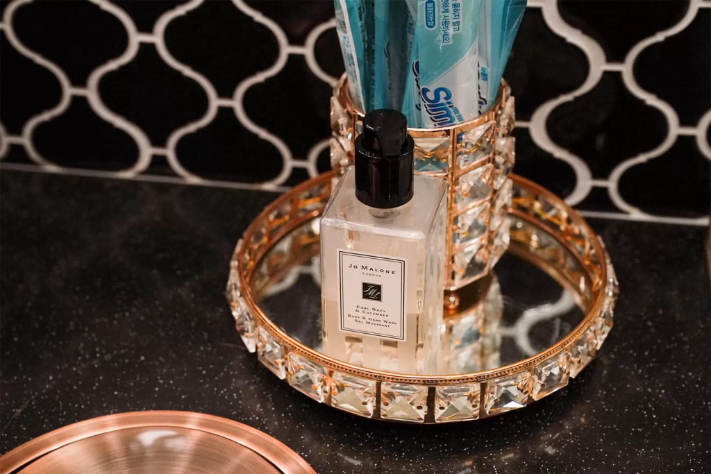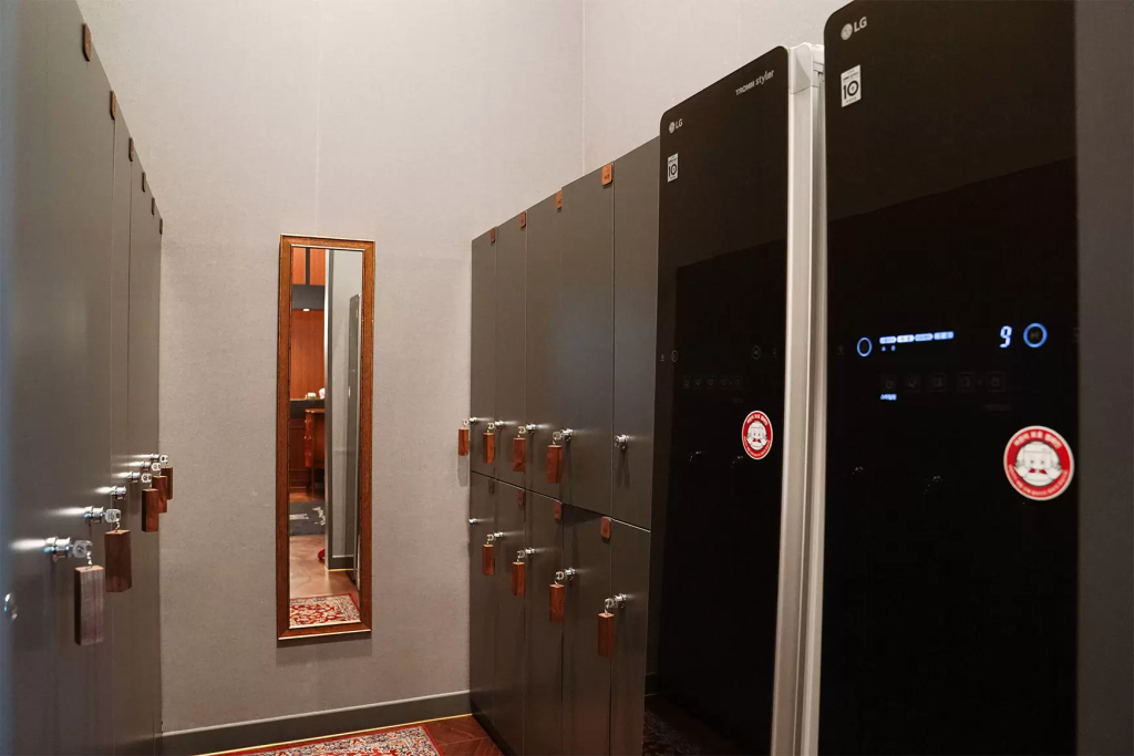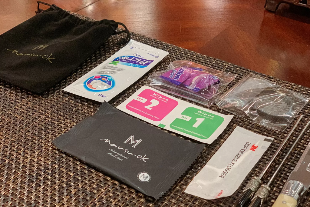 음식만큼 서비스도 놀라웠는데요. 냄새가 배지 않도록 옷을 벗어둘 수 있는 락커 룸과 스타일러, 식사 전후의 편의를 위한 아이템이 담긴 파우치를 시작으로 화장실에 비치된 조말* 핸드워시, 다*슨 에어랩 드라이기, 면봉, 위생용품이 마련되어 있었습니다. 곳곳에 마련된 사려 깊은 서비스에 여러 번 감동했어요.