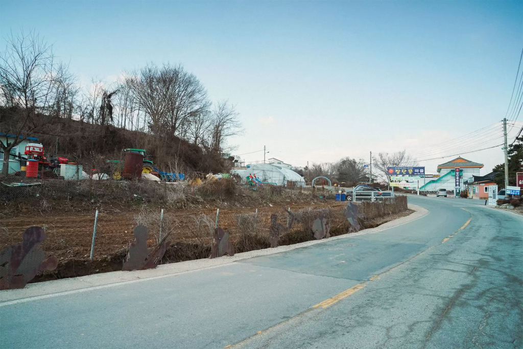 이곳에 가기 위해서는 민간인 통제선, 일명 ‘민통선’을 꼭 지나야 해요. 민통선 앞쪽 도로에 잠시 주차를 한 뒤, 식당에 전화를 걸면 5분 정도 후에 식당 사장님께서 에스코트를 하러 와주십니다. 사장님을 통해 출입증을 발급받고 신분증을 제출해야만 민통선을 넘어갈 수 있어요.
