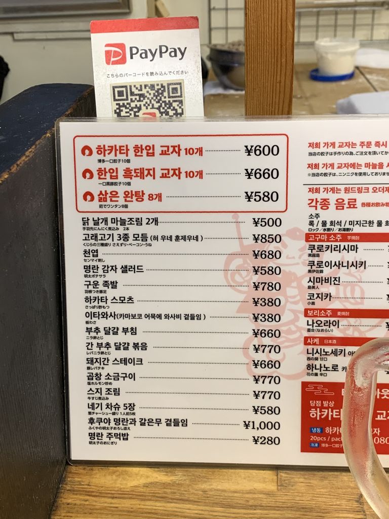 ‘여기가 맞나?’ 싶은 조용한 주택가 골목에 자리한 식당. 세련되면서도 무게 있는 분위기를 지닌 이곳은 한국 여행자들에게도 많이 알려진 후쿠오카 교자 대회 1등 맛집이다. 무거운 문을 밀고 들어서면, 마치 심야식당에 나올 법한 마스터가 환한 미소로 맞아준다.