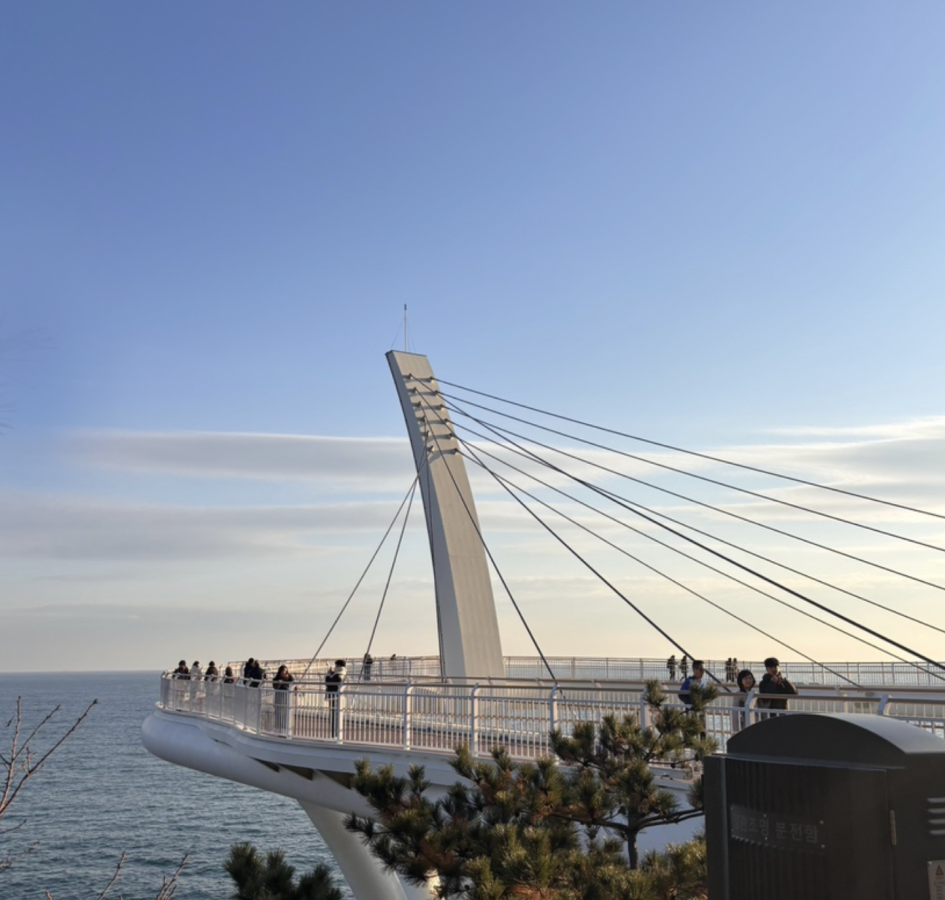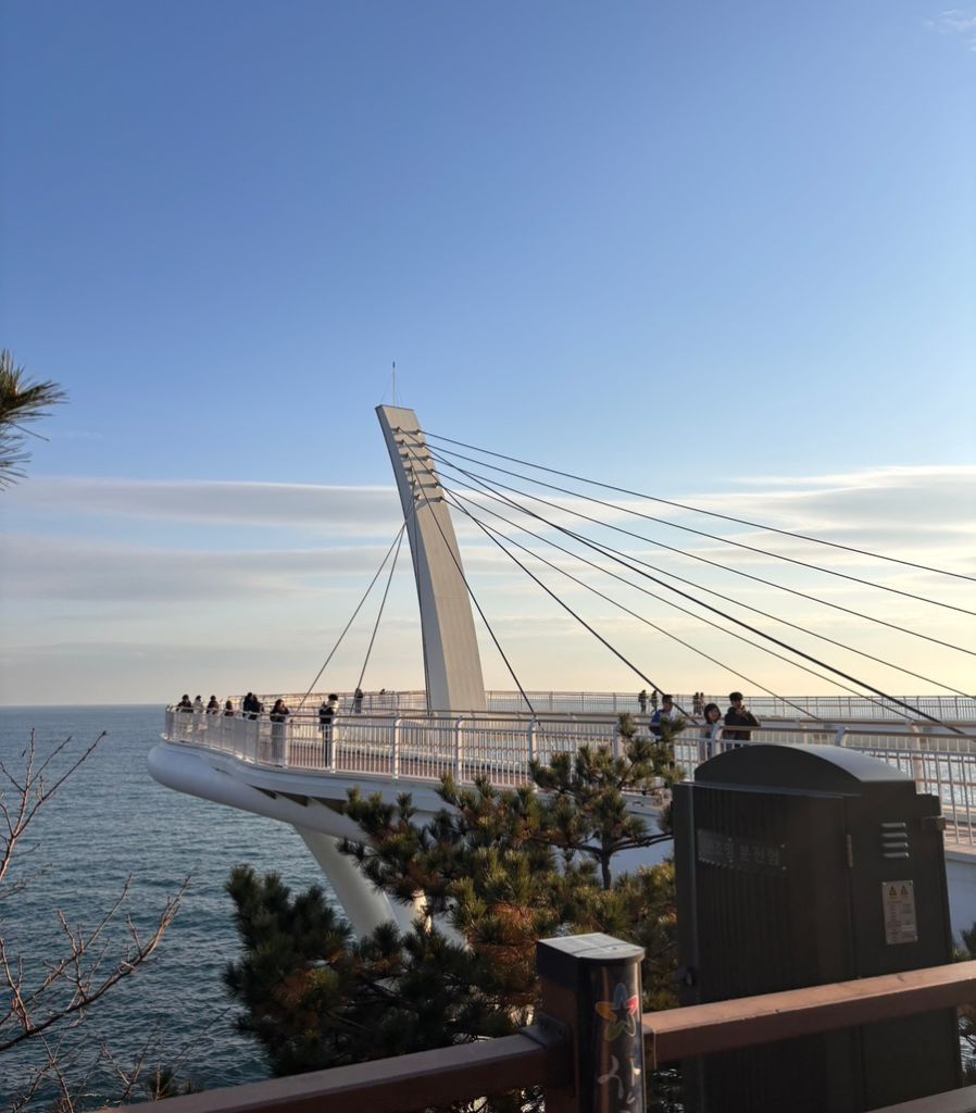 해운대 달맞이 길 아래 새롭게 생긴 스카이워크. 여행자들에게 인기인 블루라인파크 미포 정류장에서 해안 산책로를 따라 15분 정도 걷다 보면 이곳에 도착한다.
