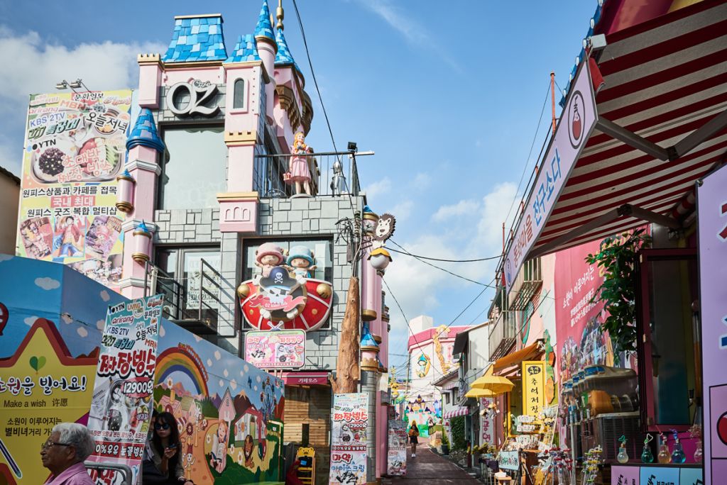 아기자기한 벽화와 조형물로 꾸며져 있어 산책하듯 둘러 보기 좋은 곳. 그중 입구에 '#동화마을'이라고 적힌 조형물과 무지개, 팬더와 함께 찍는 인증샷이 인기다.