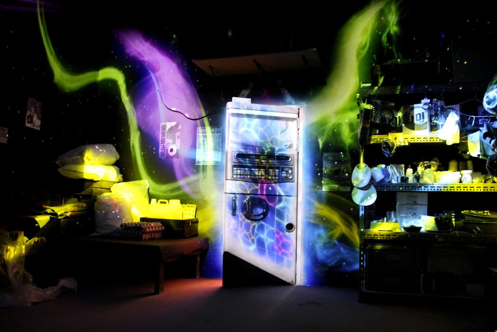1980년대의 슈퍼마켓을 무채색으로 재현해 놓은 공간을 지나면, 화려한 공간의 미디어 아트가 본격적으로 시작된다. 백스테이지인 곱을락에는 돌하르방 포토존이 마련되어 있다.