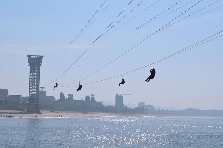 짚라인, 스카이바이크 등 액티비티 명소로 알려진 대천의 핫플레이스. 인근에 ‘머드 먹자 골목’이 조성되어 있어, 액티비티 후 서해안의 별미 조개구이까지 즐길 수 있다.
