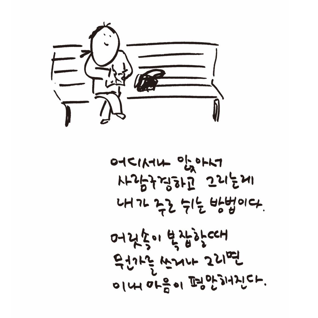 계획 없는 여행의 또 다른 묘미는 쉬고 싶을 때 언제든 쉴 수 있다는 건데요. 어디서나 앉아서 지나가는 사람들 구경하고 그림을 그리는 일이 제가 주로 쉬는 방법입니다. 머릿속이 복잡할 때 뭔가를 쓰거나 그리면 이내 마음이 평안해지거든요.