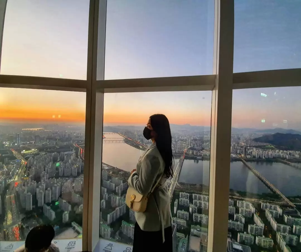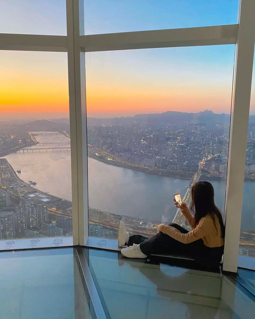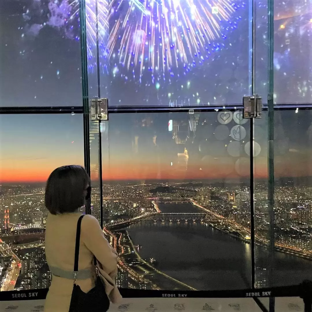 롯데월드타워 최상층에 위치한 서울스카이는 123층에 위치한 국내 최고 높이의 전망대입니다. 지상에서 무려 555m 높이에 위치한 세계 5위의 규모를 자랑하죠.