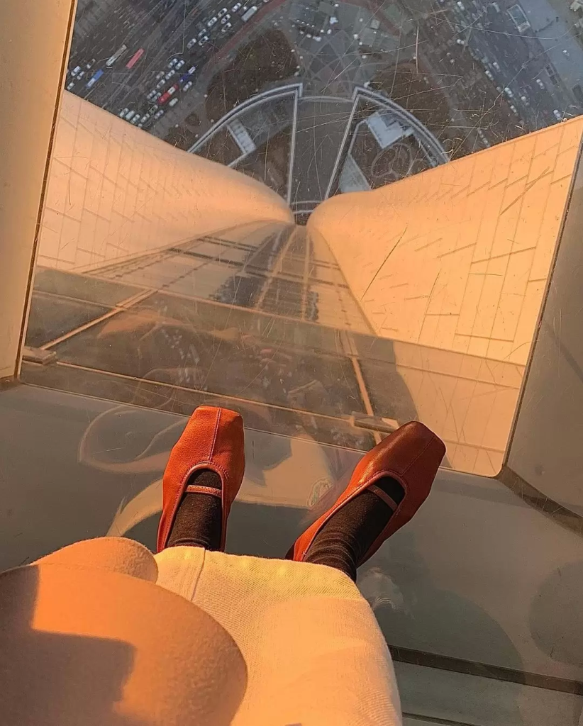 돌출형의 전망대 바닥이 유리로 설치되어 있어 밟고 서는 것 만으로도 하늘에 떠있는 듯한 아찔함을 느낄 수 있죠. 튼튼한 바닥임을 알면서도 한 발짝 내디딜 때마다 온몸에 소름이 쫙! 500미터 상공 위에서 금방이라도 떨어질 듯한 스릴을 경험해보세요.