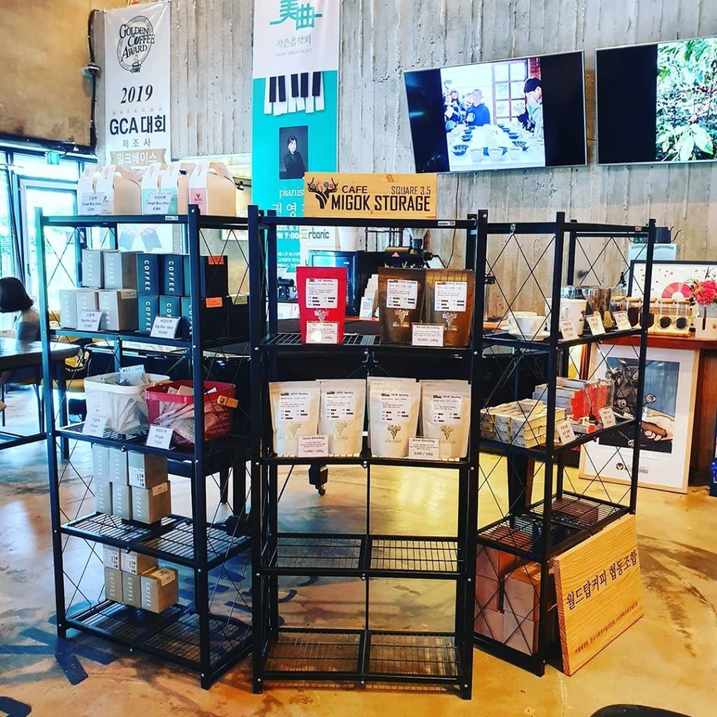 지우지 않고 그대로 남겨둔 글자와 투박하게 붙여놓은 간판. 쌀 창고를 카페로 만들어 외관부터 무척 독특하다. 카페 안은 천장이 높고 공간이 넓어 쾌적하다. 미곡창고가 핫한 이유는 독특한 외관뿐만이 아니다. 카페에서 원두를 직접 로스팅해 원두가 신선하고, 커피 맛도 뛰어나기 때문. 진열장을 가득 채운 상장들이 커피 맛을 대변해준다.