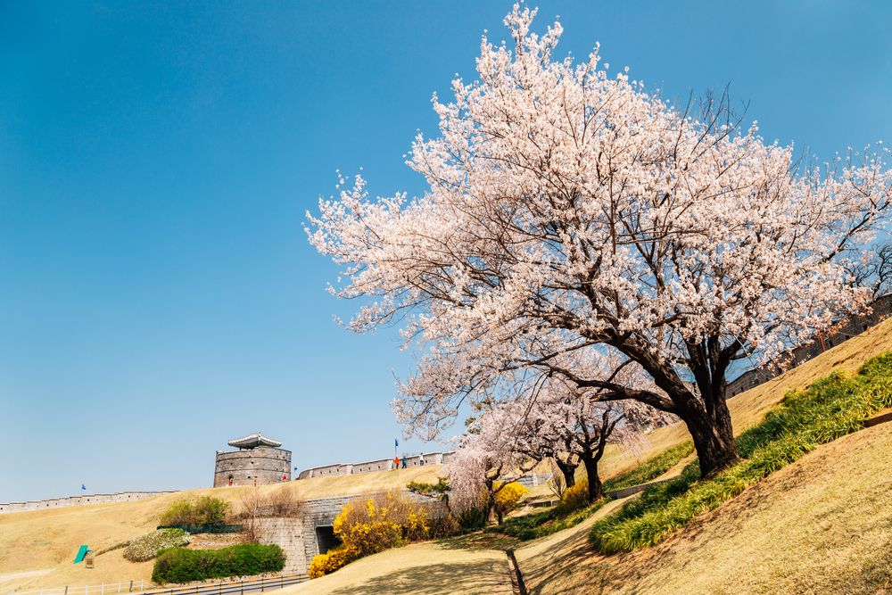 반나절 가볍게 다녀오기 좋은 서울 근교 여행지, 수원. 수원의 랜드마크는 단연 유네스코 세계문화유산으로 지정된 '수원 화성'이다. 성곽을 따라 여유롭게 걷기 좋은 이곳은 봄이면 커다란 벚꽃과 푸른 나무가 어우러져 마치 그림 속을 거니는 듯한 느낌을 선사한다. 수원의 전경을 한눈에 담고 싶다면, '서장대 전망대'에 올라 역사와 자연을 함께 즐겨 보자.