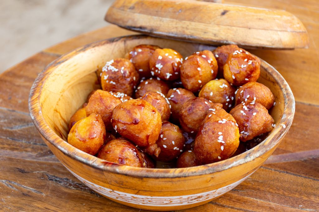 두바이에 간다면 한 번쯤 보게 될 상징적인 디저트. 길거리뿐만 아니라 아랍 요리를 판매하는 레스토랑에서 쉽게 찾아볼 수 있다. 우리나라의 찹쌀 도넛이 연상되는 비쥬얼로, 맛이나 식감도 비슷하다. 도넛 위에 달달한 시럽이나 꿀을 뿌려 당 충전에 제격이다.