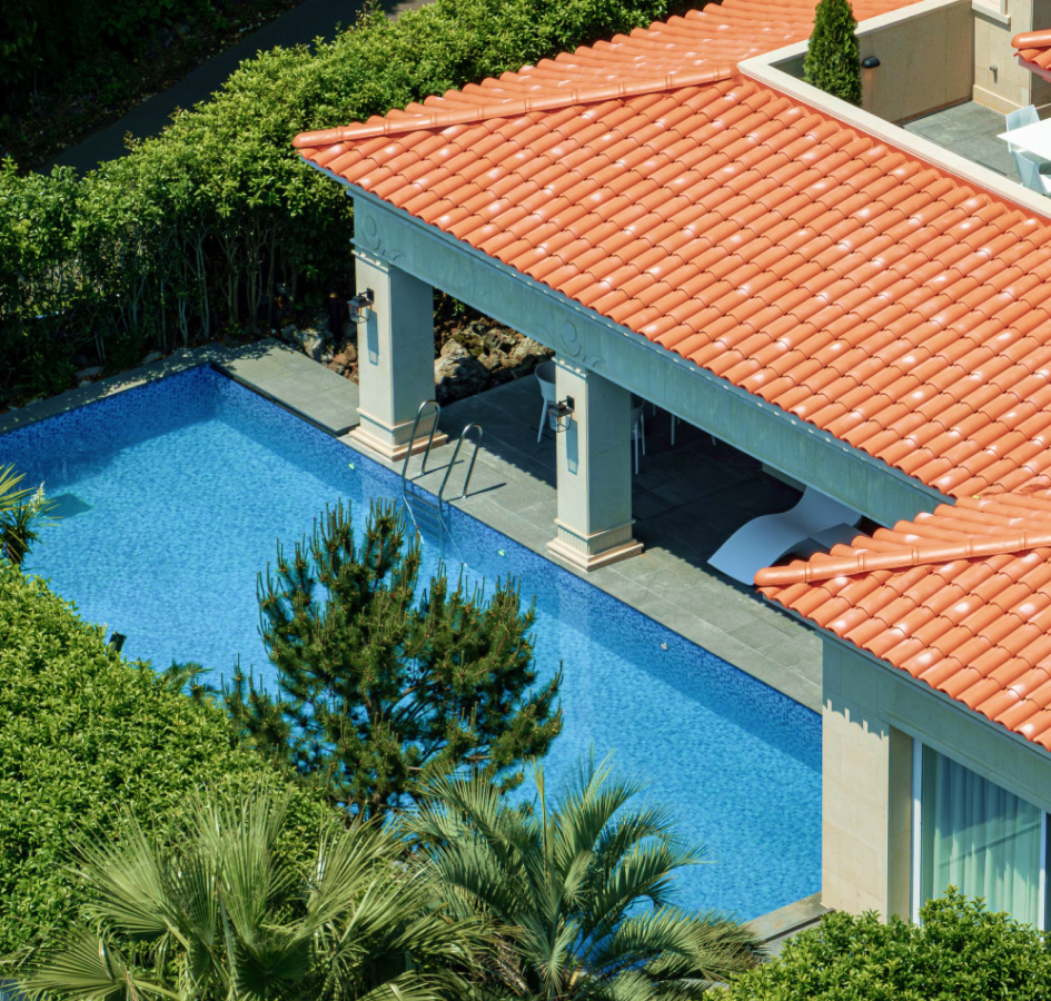 이탈리아의 꽃이라 불리는 토스카나 주를 모티브로 지어진 호텔. 주황색 벽돌 지붕과 주변으로 심어진 야자수가 이국적인 풍경을 조성한다.
