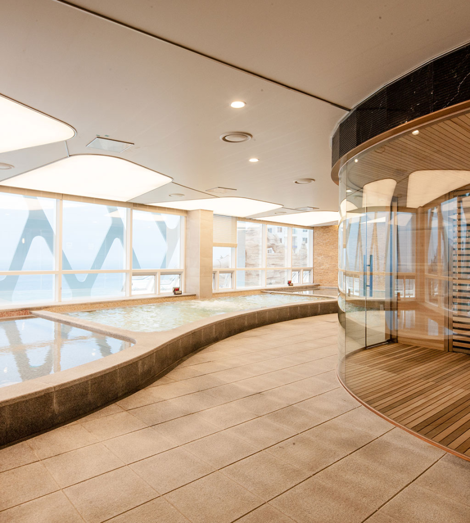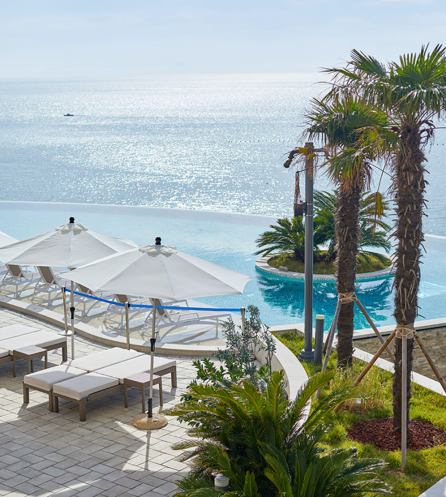 넉넉한 사이즈의 객실과 사우나 & 스파는 휴식을 취하기에 안성맞춤. 가장 특별한 시설은 숙박객들만 이용 가능한 프라이빗 비치와 탁 트인 바다 앞에 자리한 수영장이다. 특히 프라이빗 비치에는 카바나와 썬베드 등이 설치되어 더욱 낭만적인 분위기를 자아낸다.