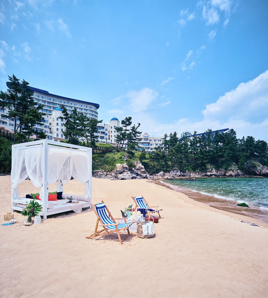 객실에는 우드톤 가구를 배치해 휴양지 분위기를 더했고, 한옥형 객실도 마련되어 있어 취향껏 고를 수 있다. 리조트 앞 바다에서는 요트 투어까지 가능하니, 새하얀 요트 위에서 여유로운 휴식 시간을 만끽해 보자.