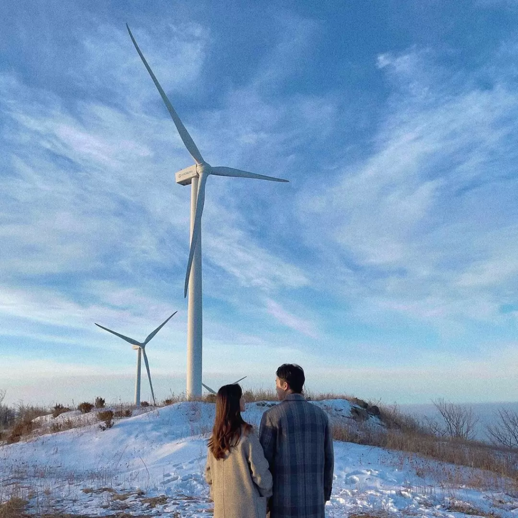 정상의 산 능선을 따라 높게 뻗은 풍력발전기는 이곳에서만 만날 수 있는 독특한 풍경으로 꼽힙니다. 이국적인 풍경과 자연 속의 힐링이 필요할 때 청옥산으로 떠나보길 추천드려요.