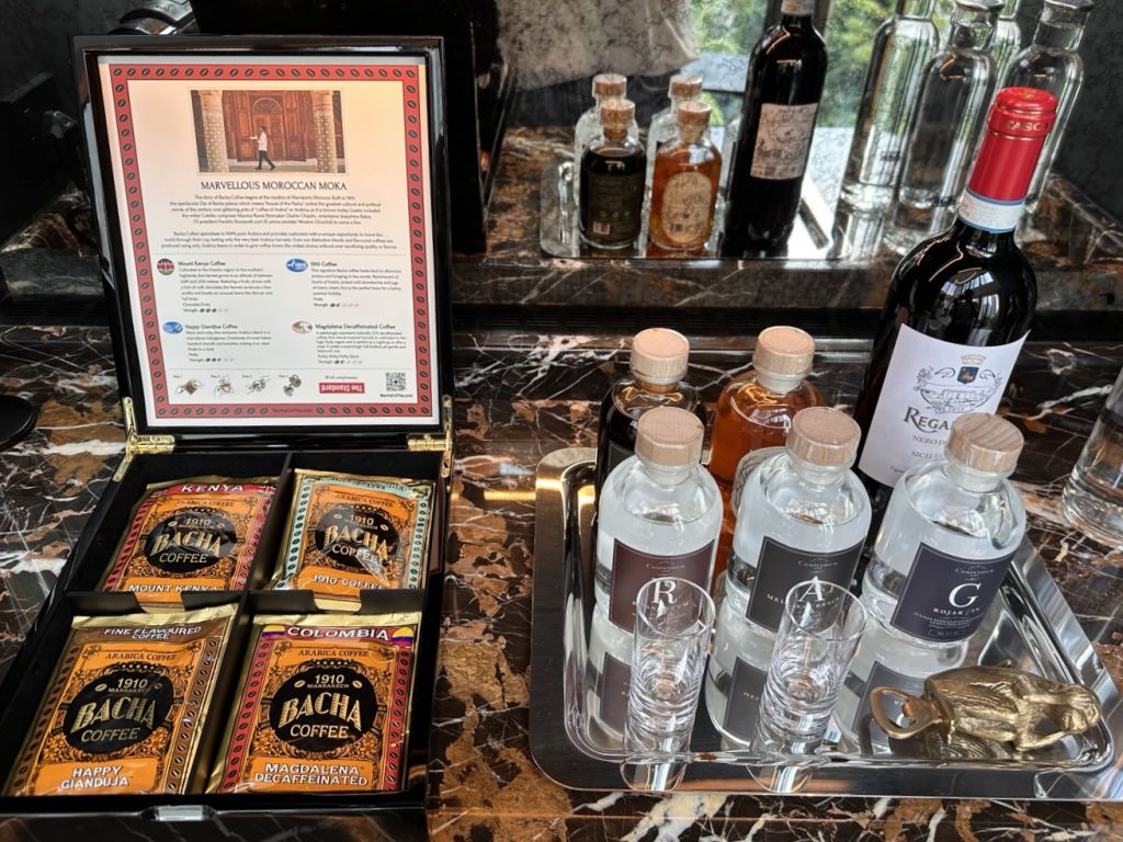 객실 미니바에서는 싱가포르의 유명 프리미엄 티 브랜드인 TWG가 제공된다. 스위트의 경우 커피계의 에르메스라 불리는 Bacha Coffee도 무료로 제공되니 놓치지 말자.