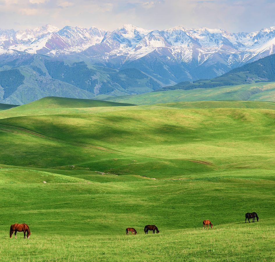 산맥 곳곳 펼쳐진 고원 역시 알마티의 자랑. 만년설이 뒤덮인 산맥을 배경으로 푸른 초원이 끝없이 이어져 장관을 연출한다. 카자흐스탄의 전통 유목 문화 역시 이곳에서 제대로 체험할 수 있다.