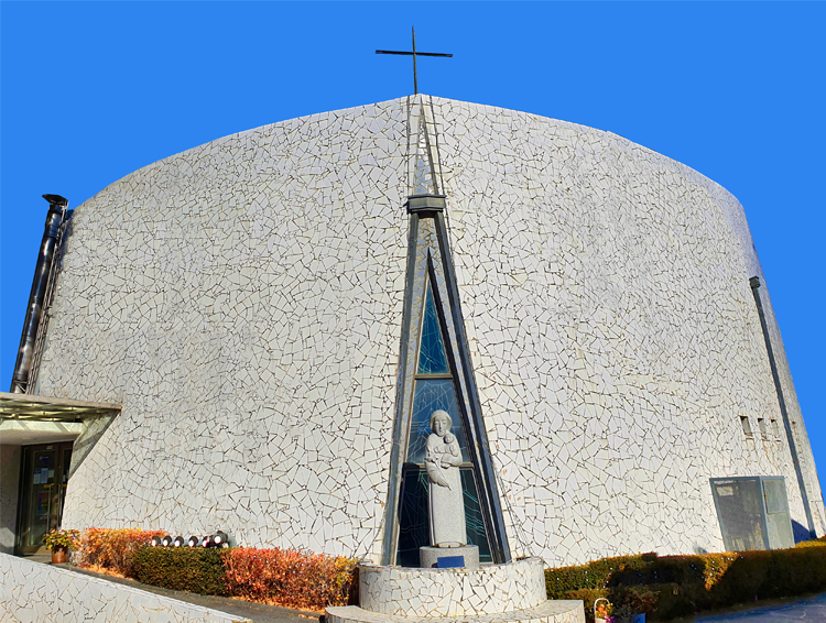 순례길을 걷듯 성당을 한 바퀴 돌도록 설계된 독특한 구조가 돋보이는 하얀 성벽의 성당. 내부에는 단 하나의 삼각 스테인드글라스만 있어, 절제된 아름다움을 강렬하게 느낄 수 있다.