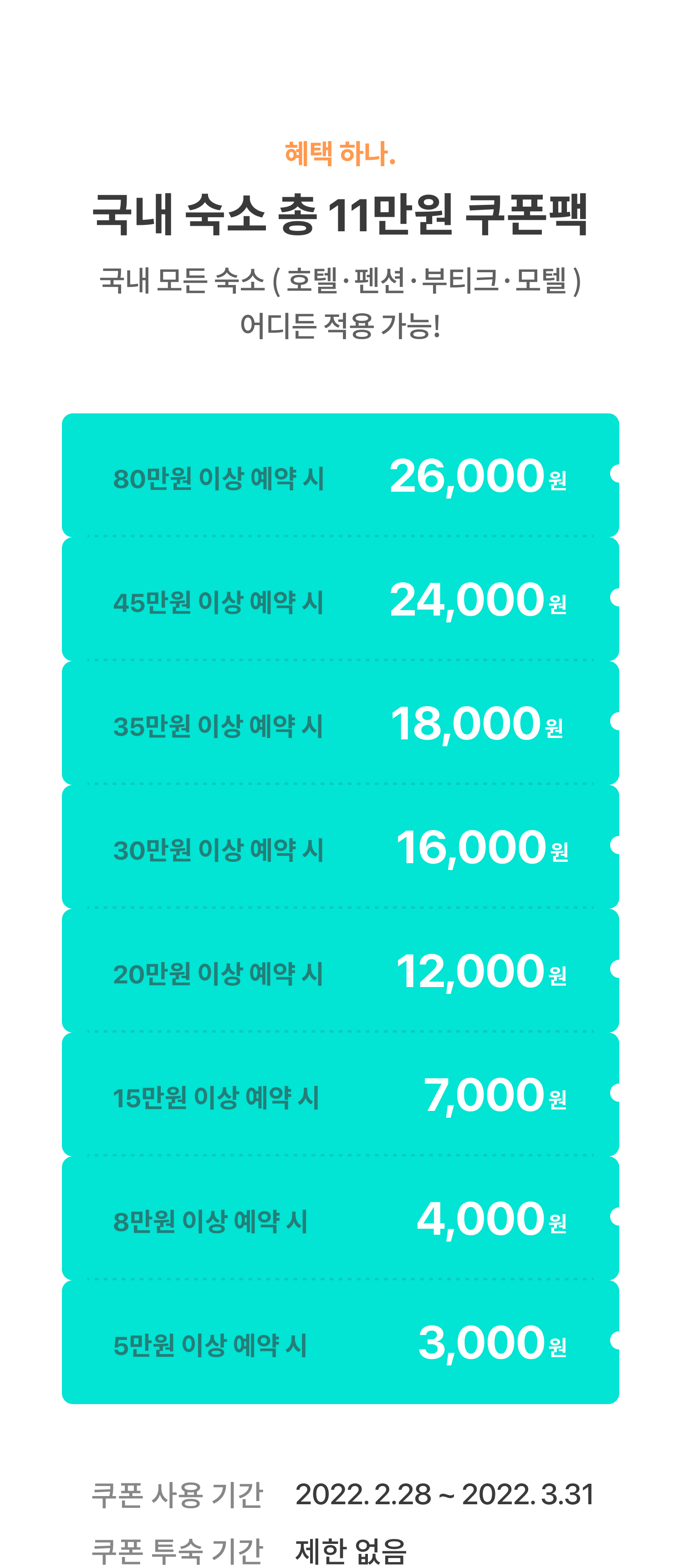 [3월 국내 숙소 쿠폰팩 (총 11만원)]