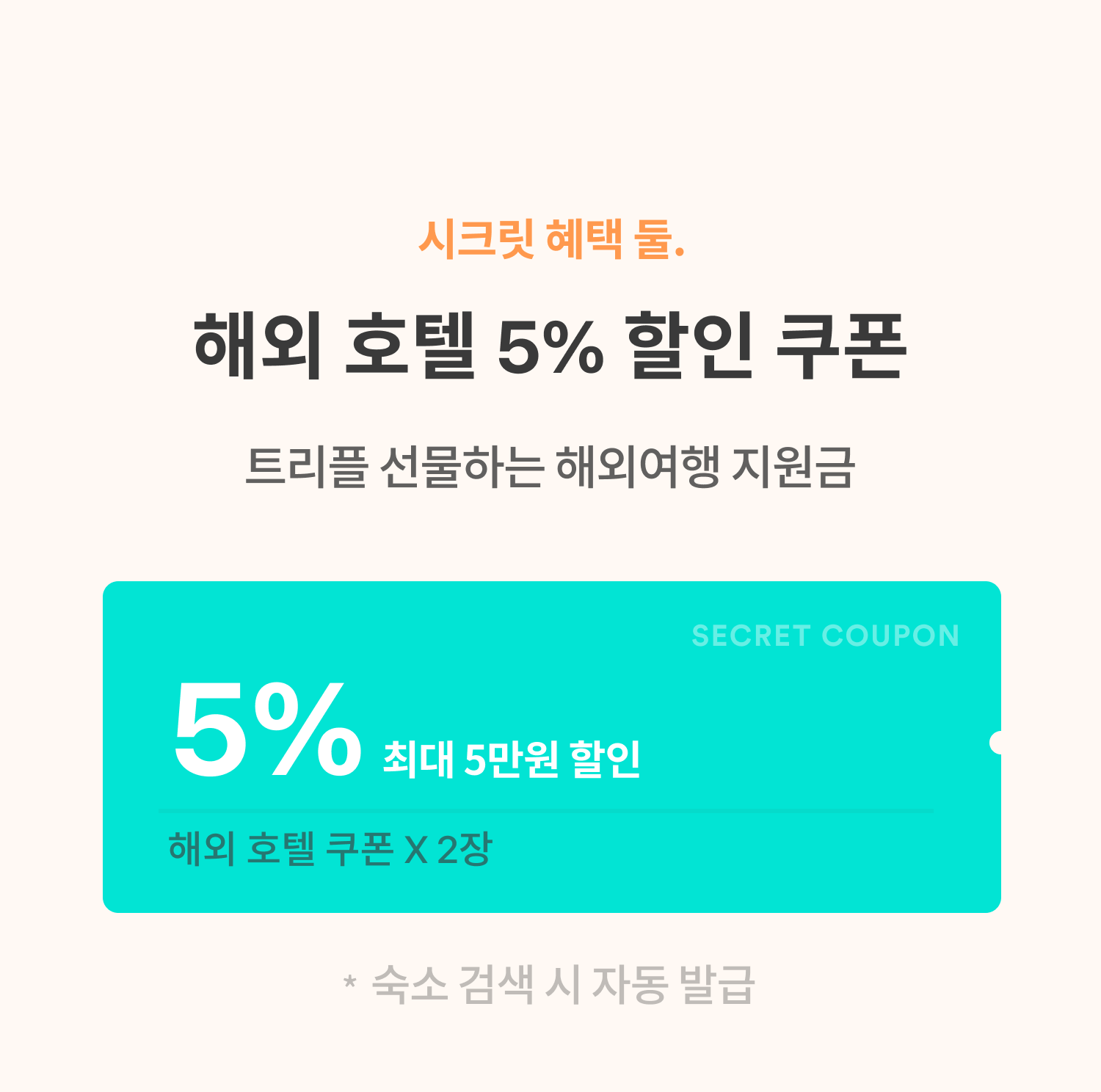 ・ 쿠폰은 국내 숙소 트리플(TRIPLE) 요금에만 사용할 수 있습니다.
