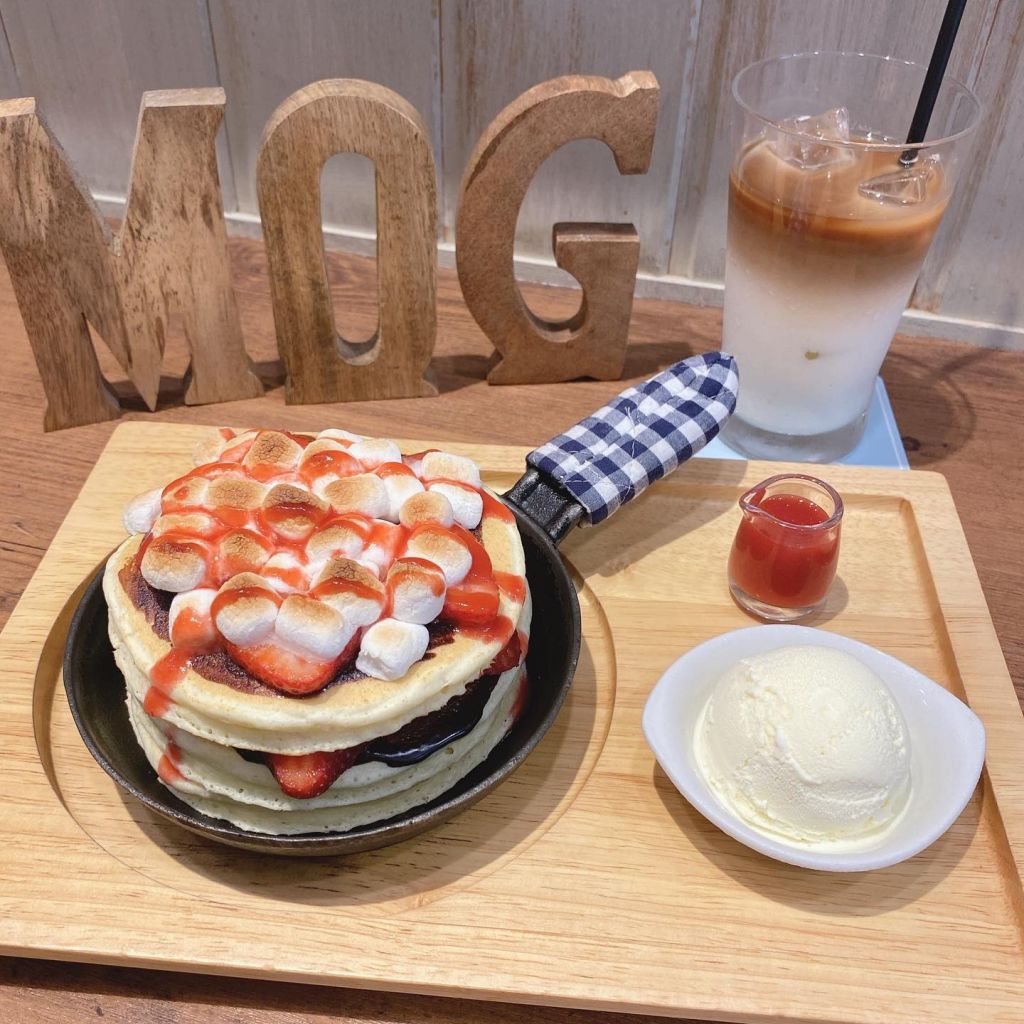 여러 겹의 팬케이크에 얹어진 부드러운 생크림과 달달한 아이스크림으로 난바를 사로잡은 모그. 모그에서는 카레부터 스팸까지 이색적인 팬케이크에 도전할 수 있다. 기본에 충실한 스페셜 팬케이크가 가장 유명하다.