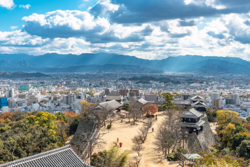 일본에 단 12곳 남은 천수각 중 하나. 리프트를 타고 천수각에 오르면 마쓰야마 시내를 360도로 내려다볼 수 있다. 입구에서는 마쓰야마 명물인 감귤 주스도 맛볼 수 있다.