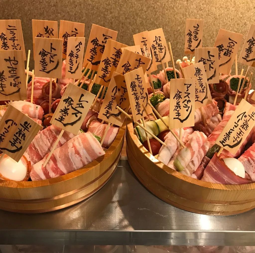 현지인들이 사랑하는 술집 거리, ‘우라 난바’에 위치한 숨은 이자카야. 신선한 야채를 삼겹살로 감싼 꼬치 구이와 오사카식 안주, 하이볼을 풍족하게 맛볼 수 있다.