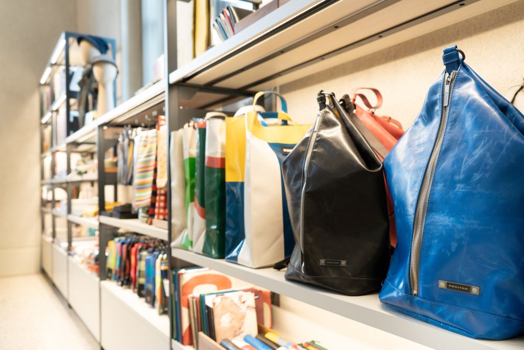 비 오는 날 가방이 젖는 것이 불만이던 취리히의 프라이탁 형제가 만든 브랜드로 실용적인 디자인과 업사이클링 제품으로 사랑받고 있다. 우리나라에도 입점해있으나 본사가 바로 여기에 있다는 사실. 가방이나 지갑, 노트북 케이스가 인기다.