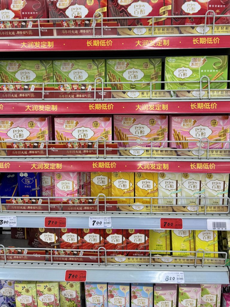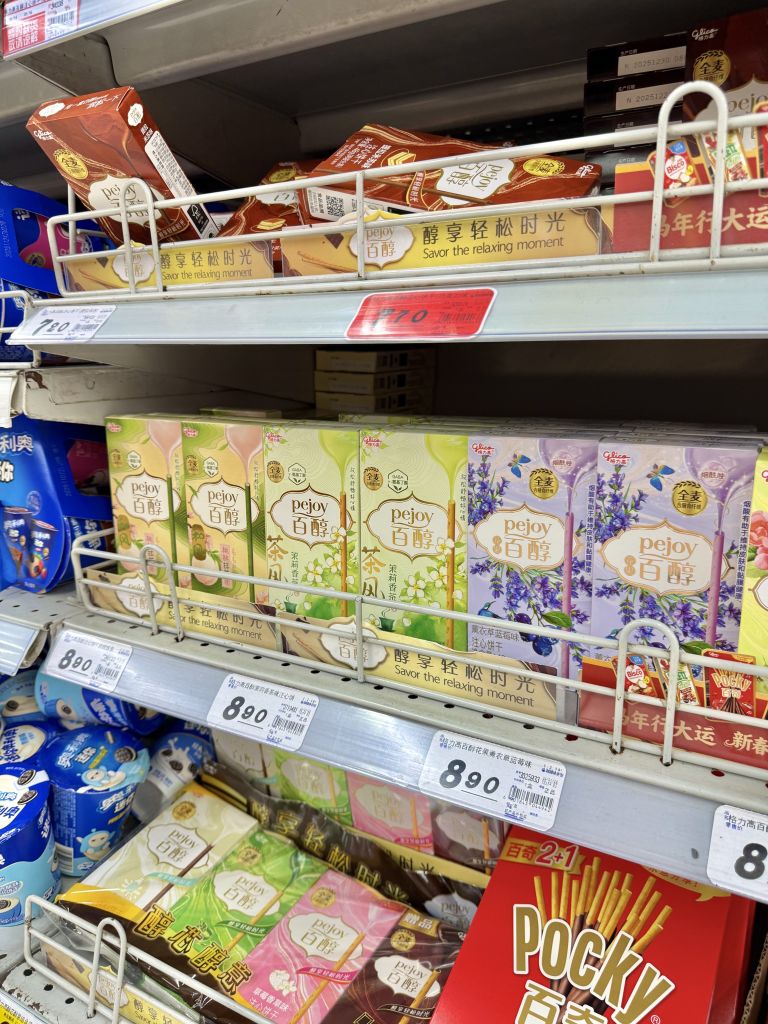 중국 편의점의 막대 과자는 종류가 다양해 매대 한 칸을 통째로 채우는 경우가 많다. 초코와 딸기 같은 기본적인 맛부터 마파두부, 양꼬치 등 개성 넘치는 라인업으로 가득해 새로운 맛을 하나씩 시도해 보는 묘미가 남다르다. 부피가 크지 않고, 가격도 저렴해 선물용으로 추천.
