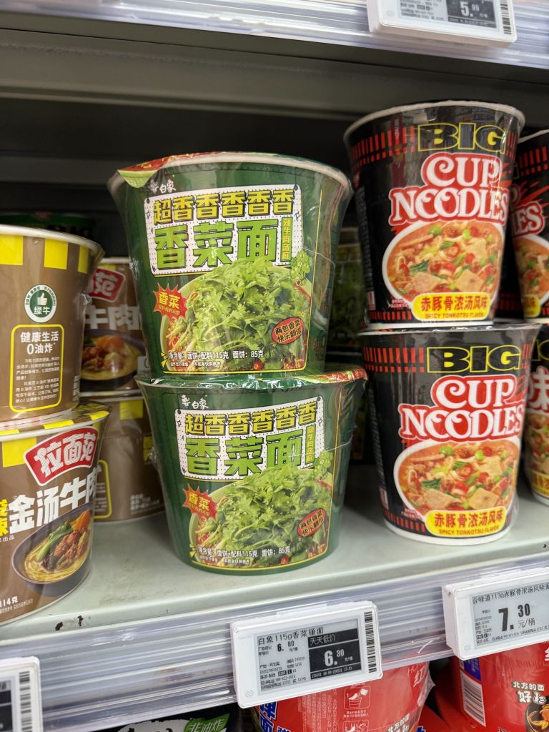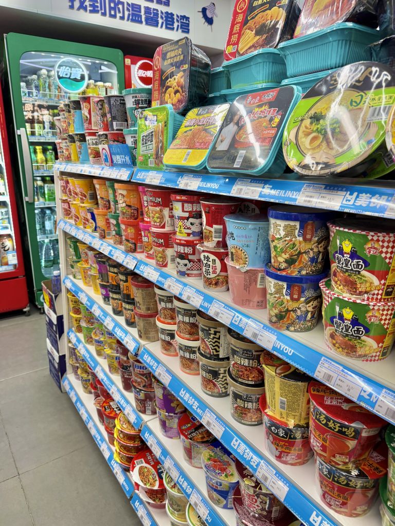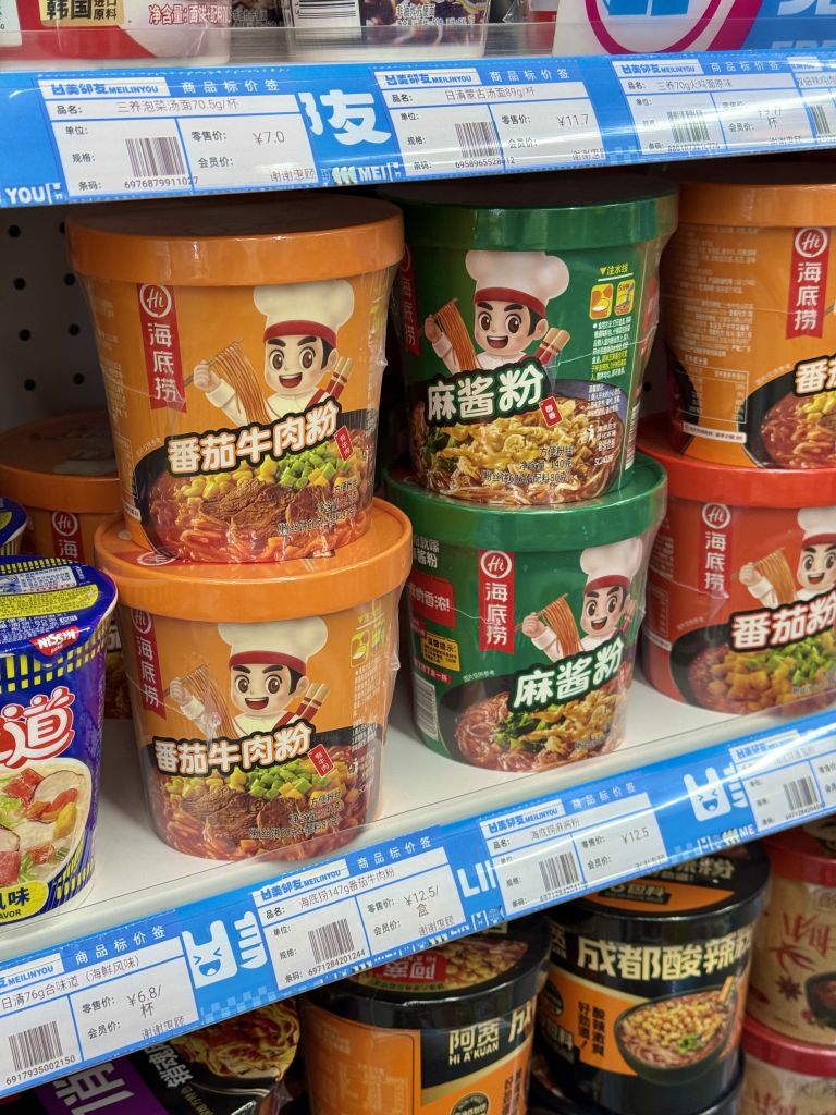 중국 여행의 하루를 마무리하는 야식으로 컵라면을 빼놓을 수 없다. 알찬 건더기와 진한 액상 소스와 가루가 들어 있어, 전문점 못지 않은 깊은 국물 맛을 즐길 수 있다. 참고로 대부분의 중국 컵라면 제품 안에는 일회용 플라스틱 포크가 동봉되어 있으니 참고할 것.