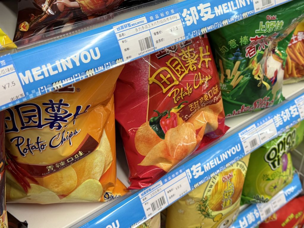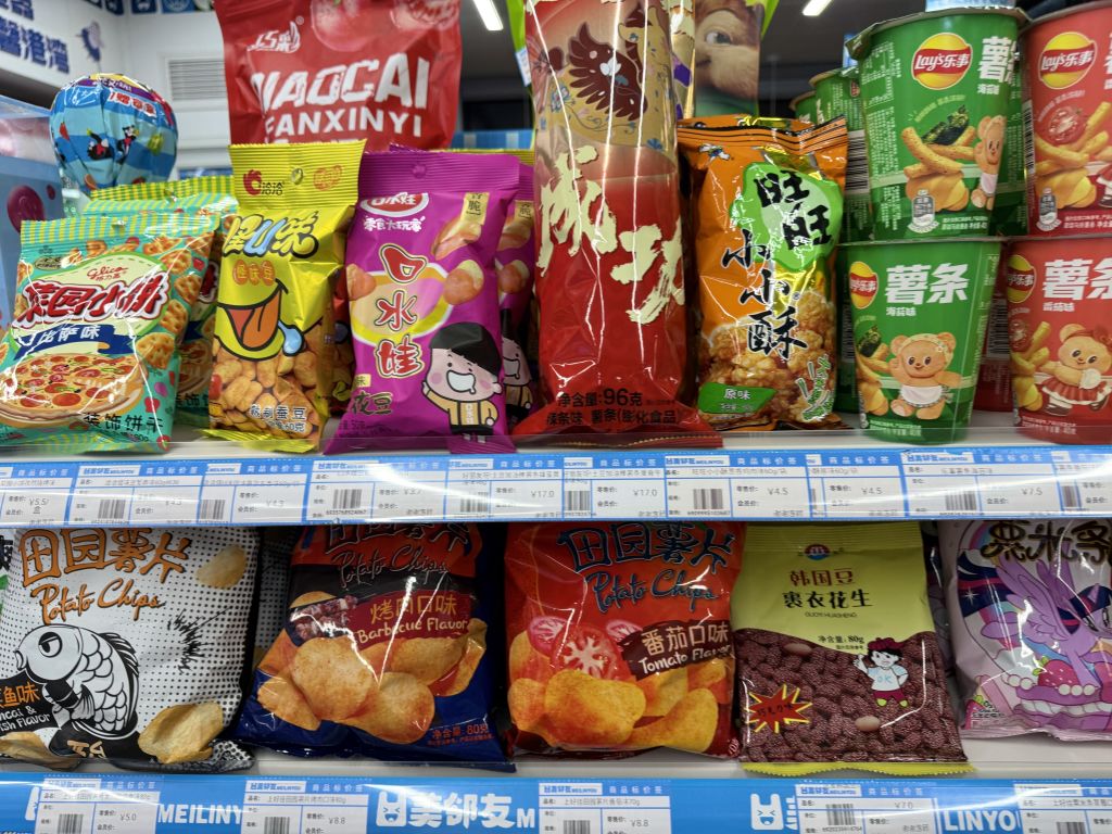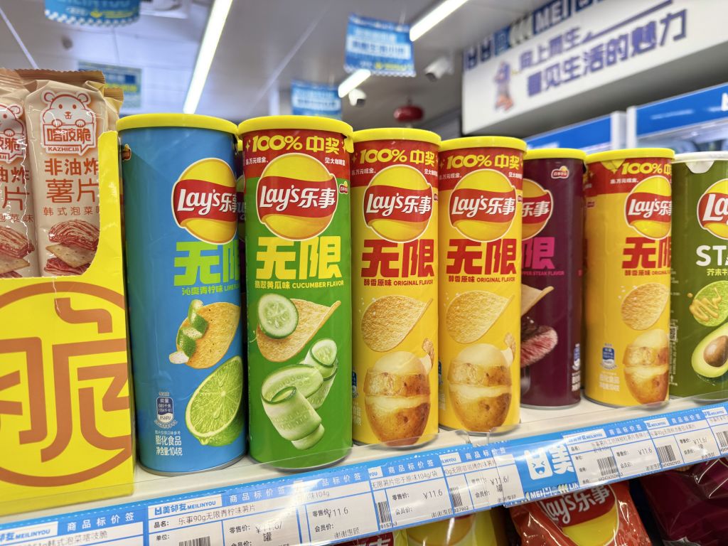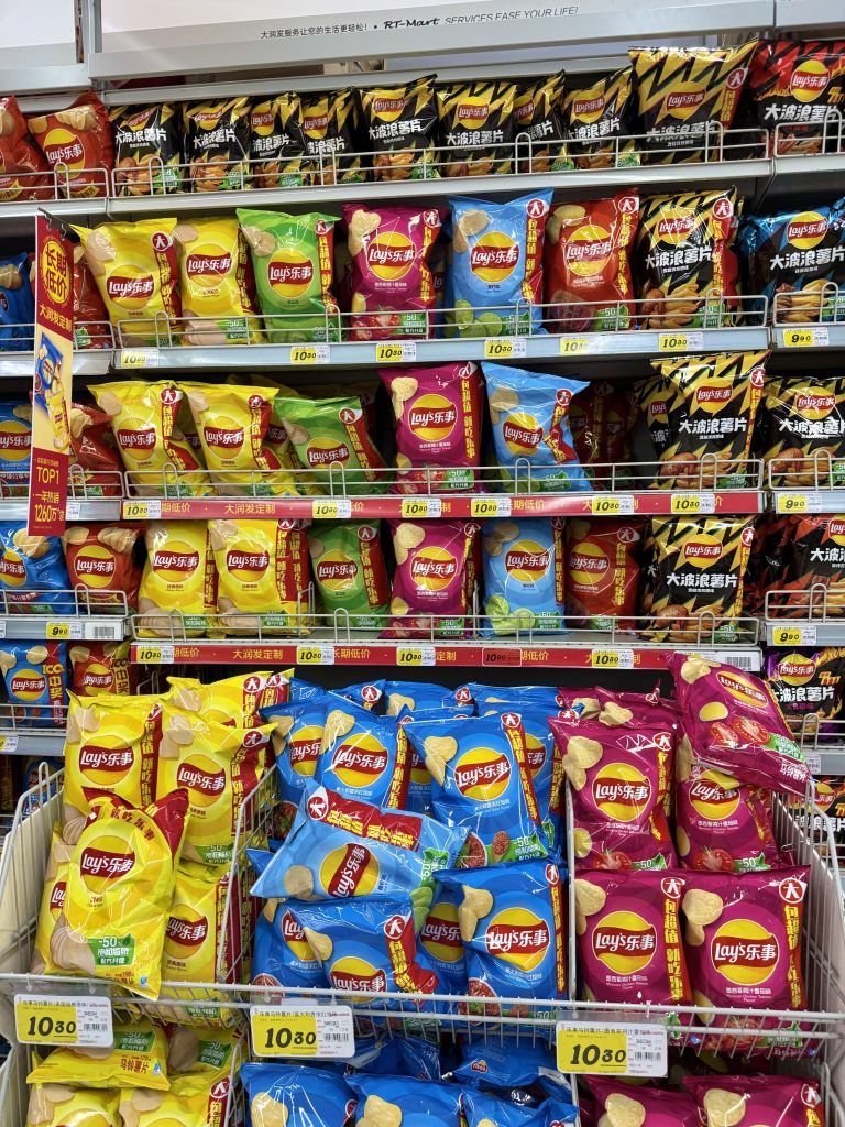짭쪼름한 간식이 땡긴다면 감자칩을 빼놓을 수 없다. 중국 편의점에는 한국에서는 보기 힘든 이색적인 맛의 감자칩이 다양하게 진열되어 있어, 원하는 맛을 고르는 재미가 쏠쏠하다. 오이 맛부터 양꼬치 맛까지 독특한 시즈닝이 가득하며, 취향에 따라 봉지형과 원통형 패키지 중에서 고를 수 있다.