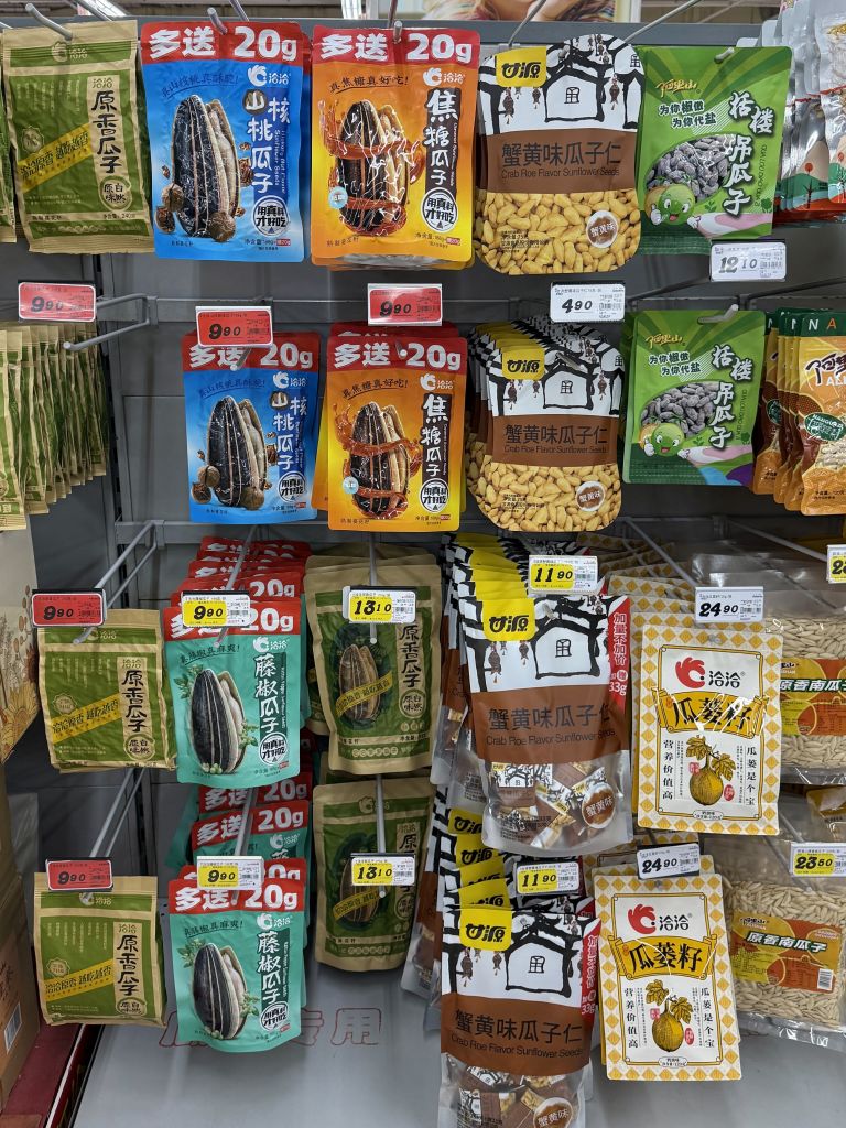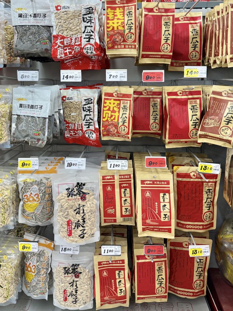 현지인들이 즐겨 찾는 대표적인 간식. 해바라기씨를 껍질째 양념한 후 볶아내어 간이 짭짤하다. 빨간색 포장지가 스테디셀러이니 이니 구매할 때 참고할 것.