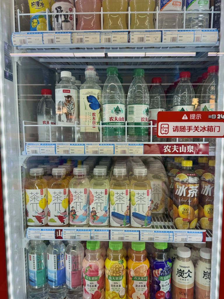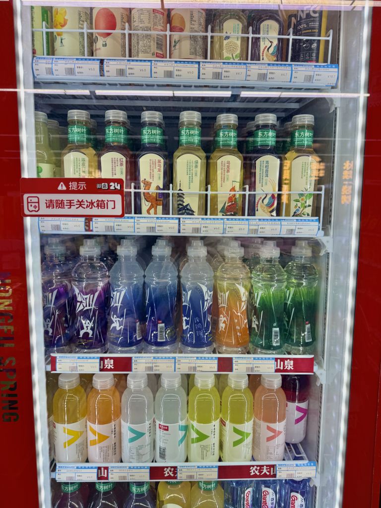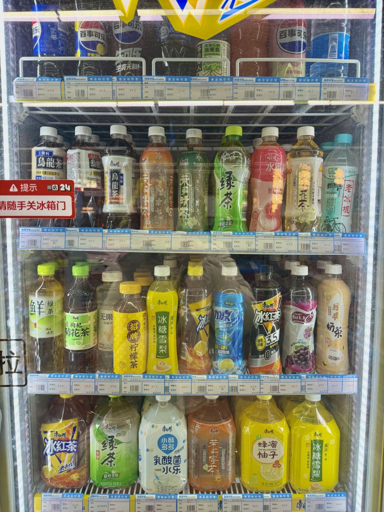 여행 중 갈증을 달래고 싶다면 반드시 구매해야 하는 아이템. 차 문화가 깊게 자리 잡은 나라답게 설탕을 넣지 않은 깔끔한 무가당 차부터, 과일 향이 느껴지는 물까지 선택지가 폭넓다. 참고로 중국은 식당에서 음료 반입에 대해 관대한 편이라, 편의점 음료를 들고 가서 마셔도 제지하지 않는다.