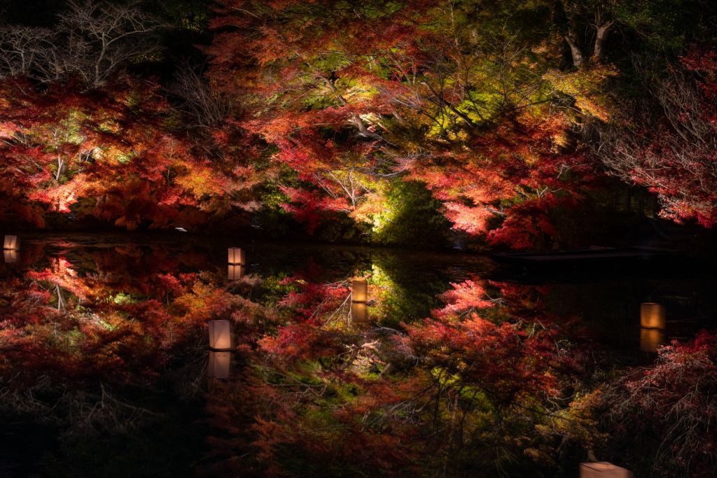교토의 밤 단풍을 볼 수 있는 스팟. 연못 주변의 풍성한 단풍나무가 오색 빛으로 물든다. 라이트 업 기간은 11월 15일부터 12월 10일까지.
