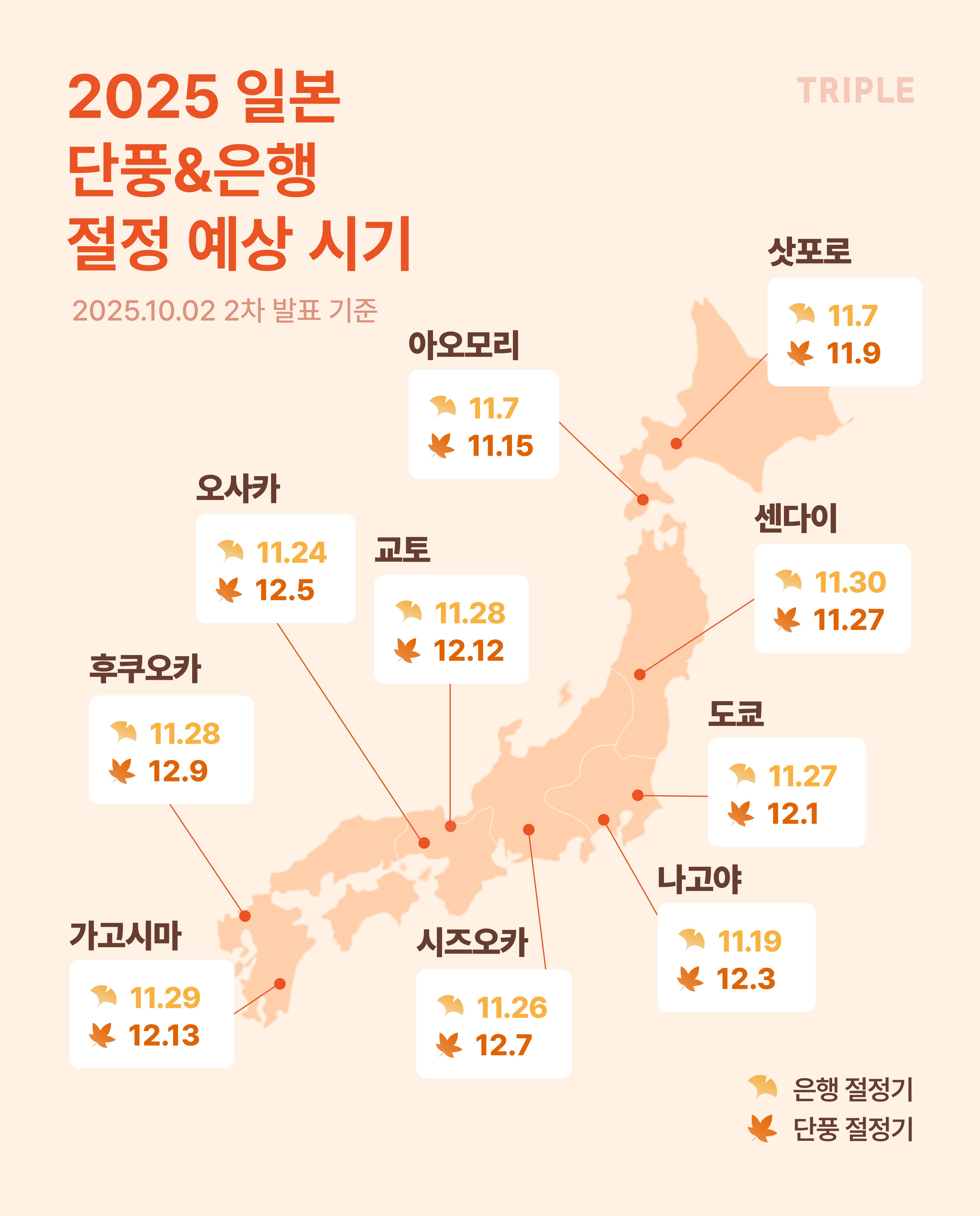 언제, 어디에서 가장 아름다운 단풍을 만날 수 있을까? 절정 시기부터 도시별 대표 명소까지, 올가을 일본 단풍 여행의 모든 것을 정리했다.