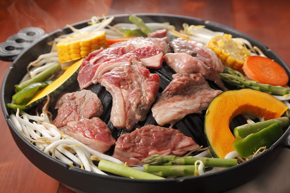 삿포로의 대표 요리인 징기스칸식 양고기 구이도 빼놓을 수 없다. 둥근 철판에 양배추, 콩나물 등의 채소와 함께 양고기를 구워 먹는 요리로, 실내외 모두에서 즐길 수 있는 홋카이도의 별미로 손꼽힌다. 특유의 향과 부드러운 식감이 매력적이다.
