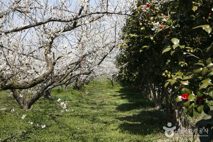 매화와 동백꽃의 조화를 눈에 담을 수 있는 대규모 농원