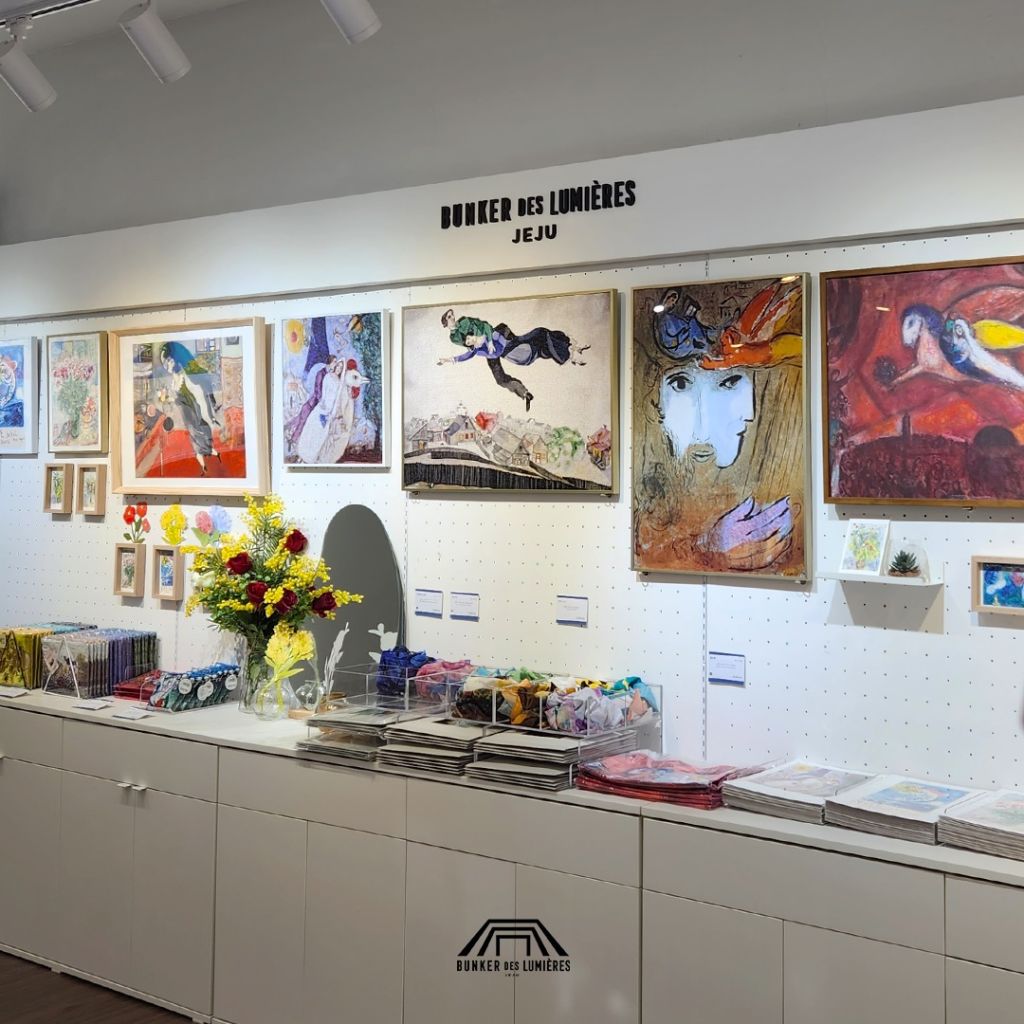 '빛의 벙커' 전시 작품들의 문구 잡화와 굿즈가 가득한 숍