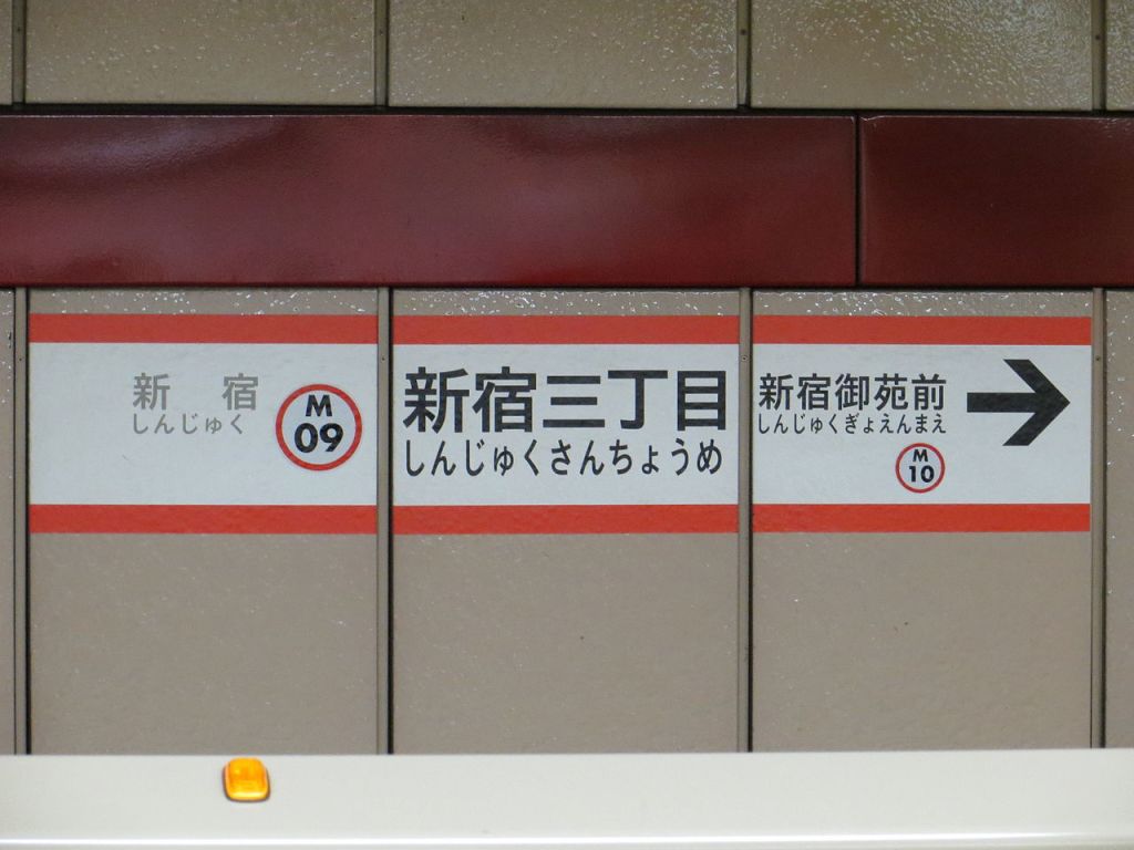 출처 commons.wikimedia.org/wiki/File:Sign_from_Shinjuku-sanchome_Station_Marunouchi_Line_IMG_9348_20131029.JPG