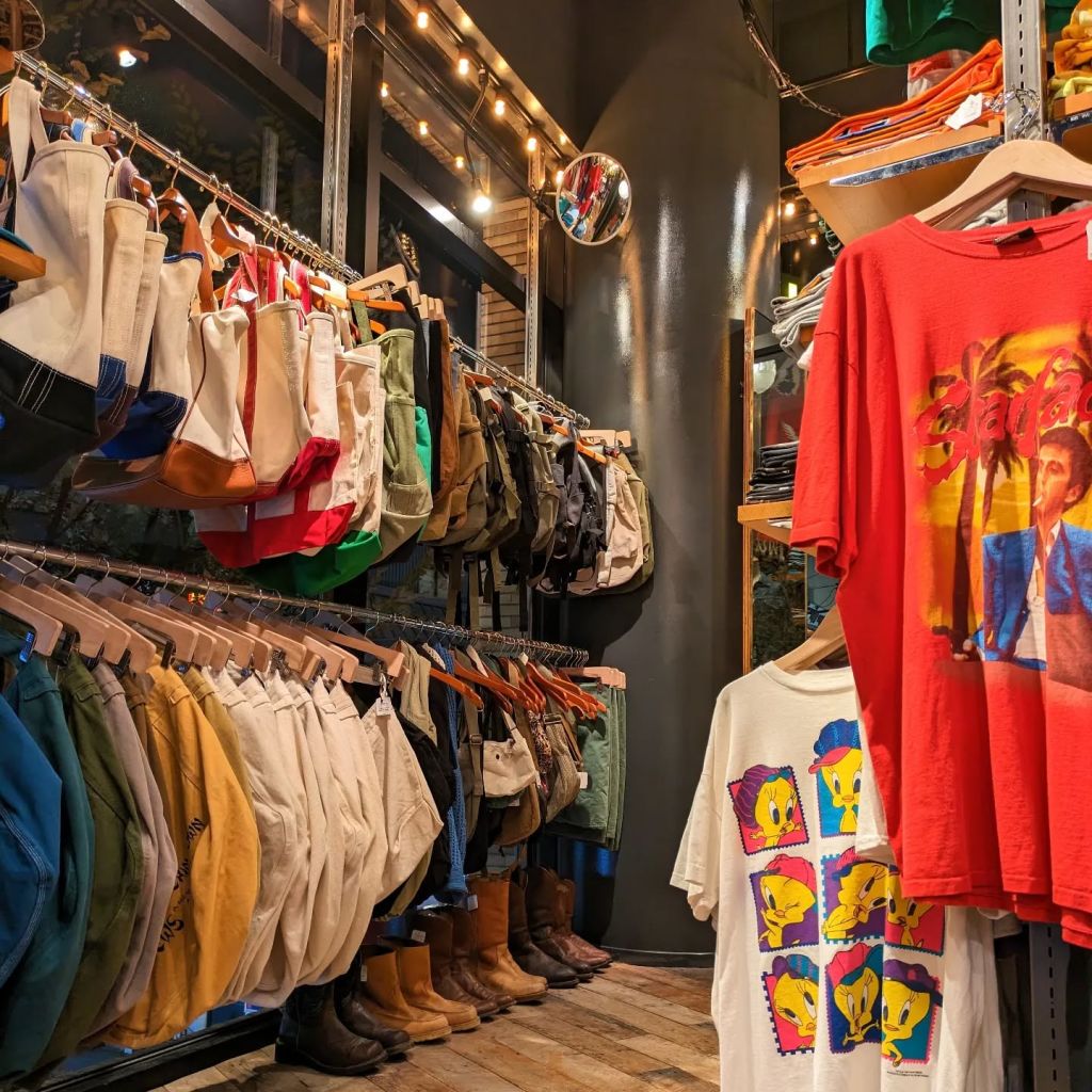 하와이안 셔츠, 브랜드 의류, 액세서리 등 빈티지 잡화를 폭넓게 갖춘 숍