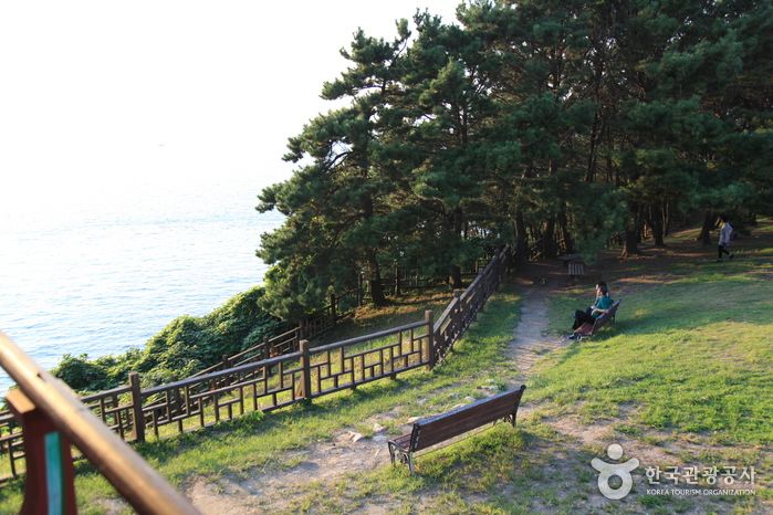 소나무와 동백나무가 우거진 숲길을 걸으며 힐링하기 좋은 명소