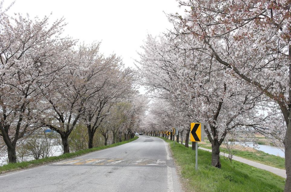 강변 둑길 따라 끝없이 이어지는 벚꽃 드라이브 코스
