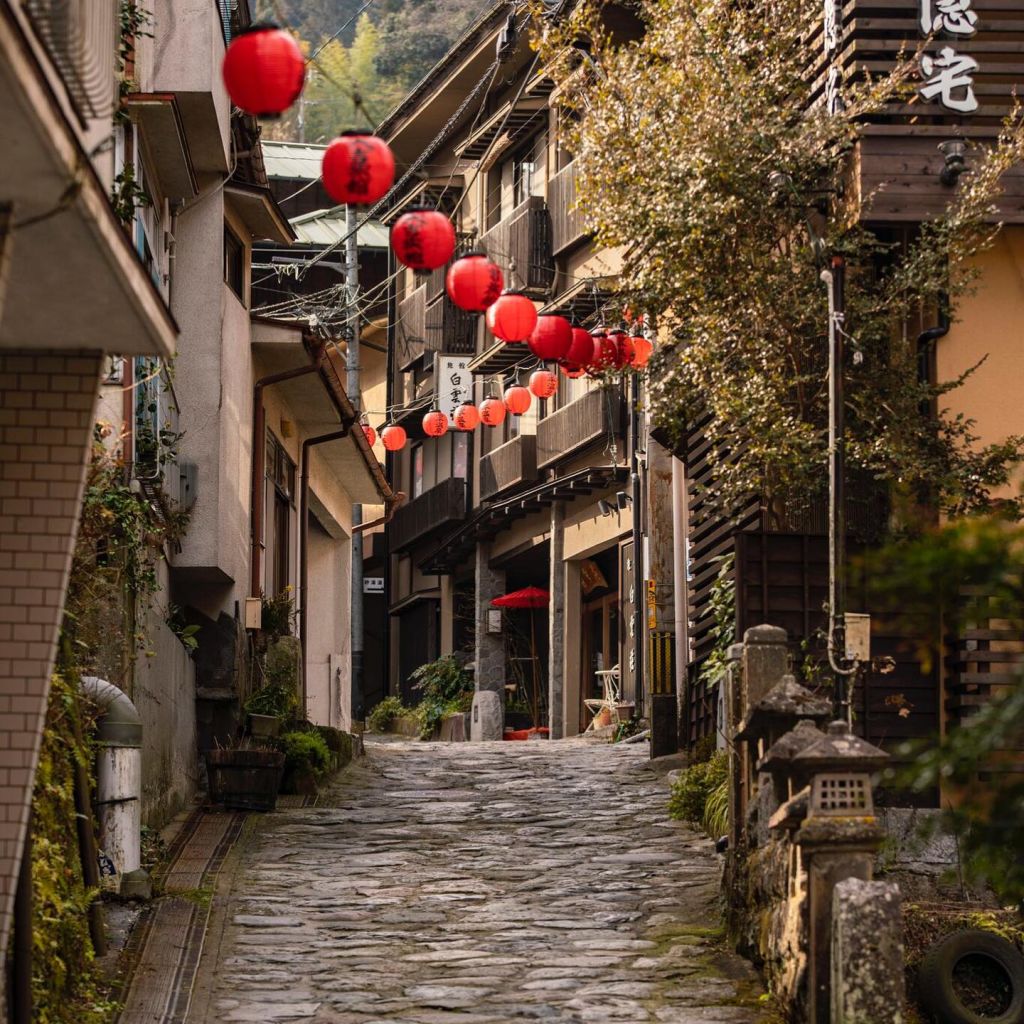좁은 비탈길 사이로 오랜 전통의 온천이 끝없이 늘어선 온천 마을