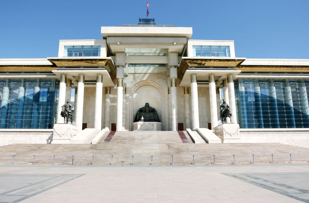 몽골 정부 종합 청사와 국회의사당이 마주 보고 있는 중심 광장