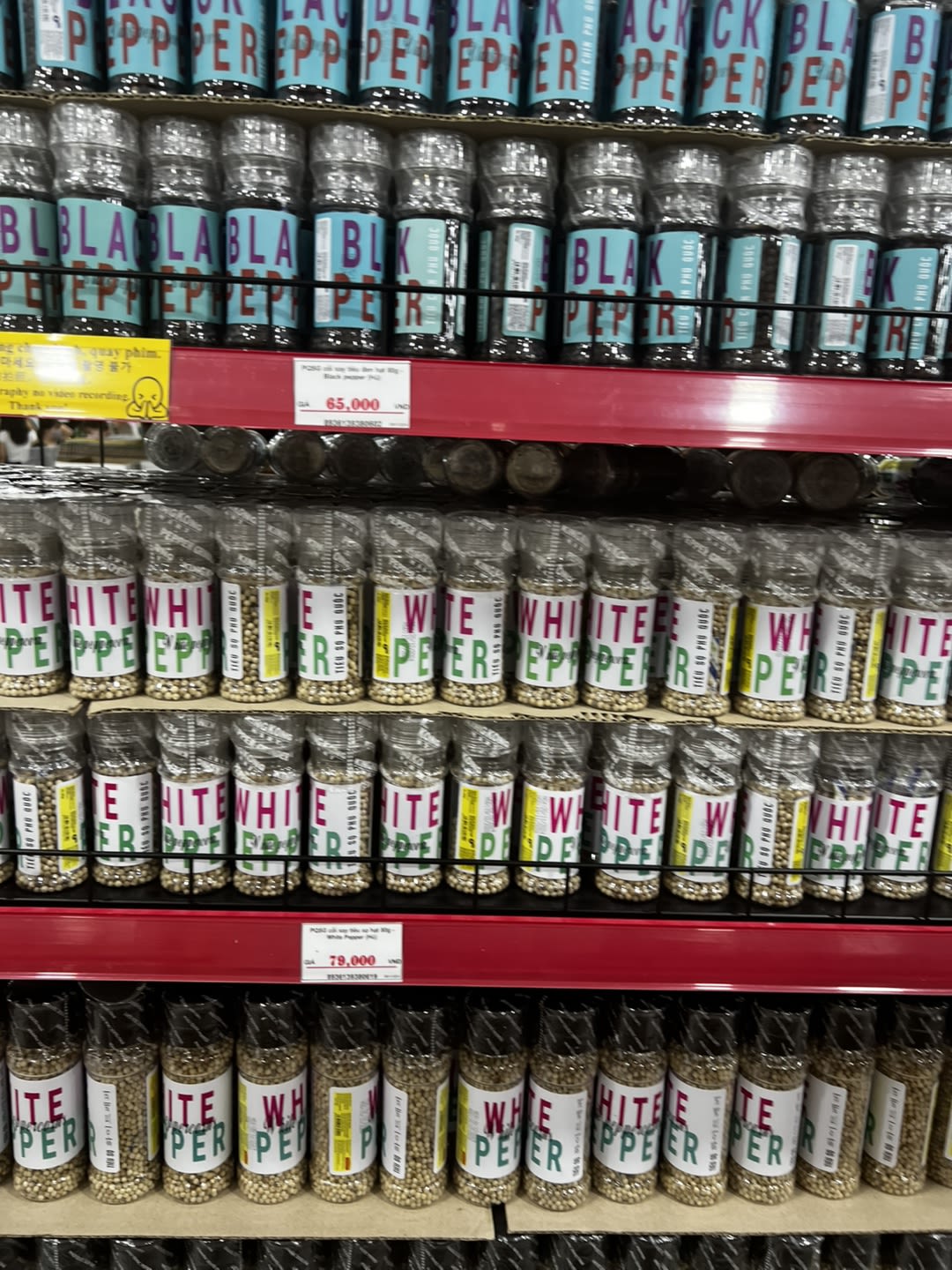 후추가격이 인터넷에 알아봤을 때 보다 가격이 더 오른거같네요? + 킹콩마트 옆에 또 킹콩마트 있는데 둘이 후추가격달랐어요, 바로 대로변앞 마트는 99000동 공사중인 건물 뒤에있는 킹콩마트는 79000동 이었습니다. 후추사게되면 참고하세용