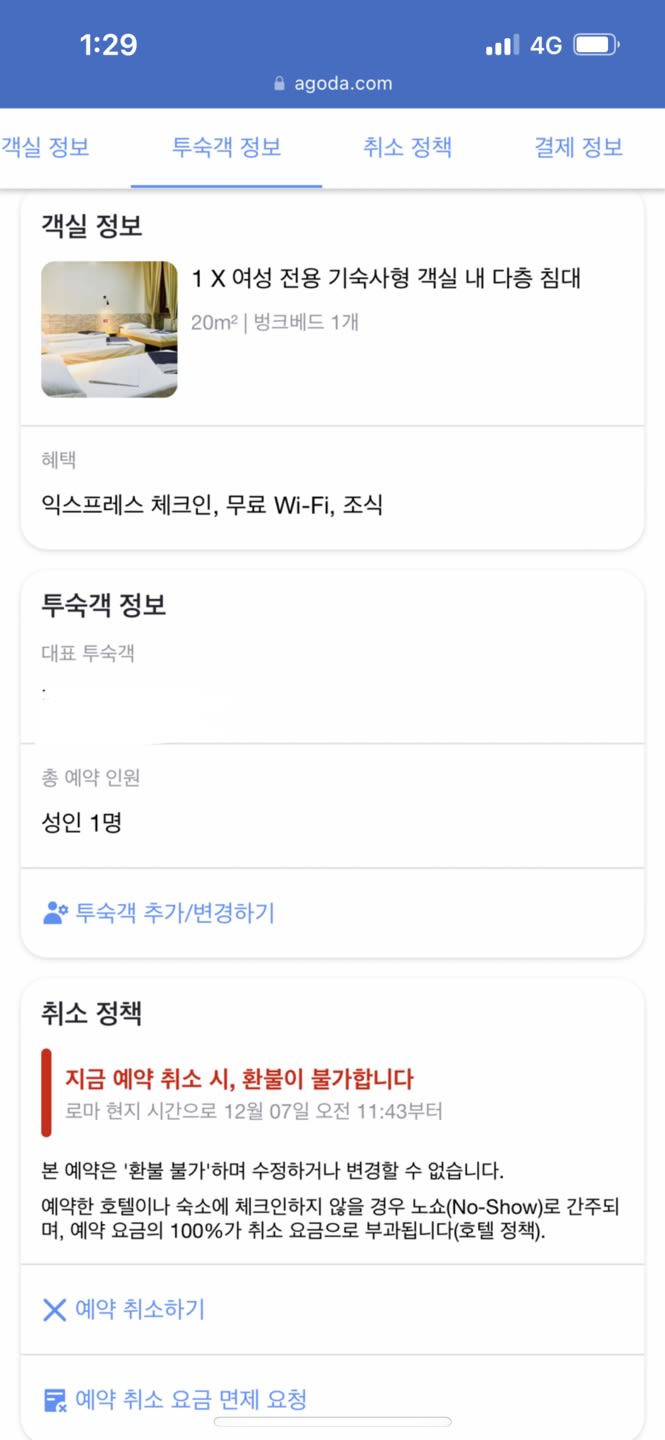 로마 2/1-2/4 숙소 양도합니다
