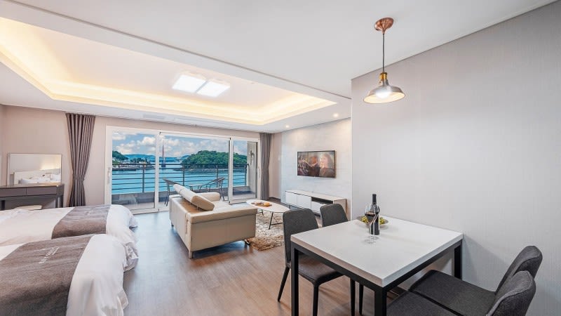 객실내 금연, 테라스에서도 금연 지정된 장소 외 흡연시 과태료 부과 되실 수 있는 점 참고 부탁 드리며 적발 즉시 퇴실 조치 되십니다. 22시 이후 입실하실 경우 펜션으로 미리 연락 부탁드립니다. 체크인, 체크아웃은 3층 프론트에서 진행 됩니다. · 약 60대 주차 가능한 공간을 보유한 제휴점입니다. · 주차 가능한 차량의 최대 높이 : 2.1m ※루프박스, 루프백 장착한 차량은 주차 불가합니다. ※주차시 프론트로 문의바랍니다. 객실내 금연, 테라스에서도 금연 지정된 장소외 흡연시 과태료 부과되실수 있는점 참고부탁드리며 적발 즉시 퇴실조치 되십니다. 예약 인원에서 인원이 추가되는 경우 펜션에 미리 연락을 주시기 바랍니다. 기준인원 초과 시 추가 인원에 대한 비용이 별도로 발생할 수 있습니다. 최대 인원 초과 시 입실이 불가능할 수 있으며, 해당 사유로 환불 받을 수 없습니다. 반려동물 입실 가능 펜션 외에 반려동물 동반 시 입실이 거부될 수 있으며, 해당 사유로 환불 받을 수 없습니다. 객실내 금연, 테라스에서도 금연 지정된 장소외 흡연시 과태료 부과되실수 있는점 참고부탁드리며 적발 즉시 퇴실 조치 숙박 업소는 법적으로 청소년 혼숙이 금지되어 있습니다. 또한 미성년자의 예약 및 이용은 숙소 규정에 따라 결정되며 해당 사유로 환불 받을 수 없습니다. 다음 이용 고객을 위해 입실, 퇴실 시간을 준수해 주시기 바랍니다. 객실 및 주변시설 이용 시 시설물의 훼손, 분실에 대한 책임은 투숙객에게 있으며, 손해배상의 책임을 질 수 있습니다. 객실의 안전과 화재예방을 위해 객실 내에서 생선이나 고기 등을 굽는 직화 방식은 허용되지 않으며, 개인적으로 준비해 오는 취사도구(그릴, 숯, 전기/전열기구 등)은 반입이 금지되어 있습니다. 객실 내에서의 흡연은 금지되어 있으며, 지정된 장소를 이용해 주시기 바랍니다. 다른 이용객에게 피해를 줄 수 있는 무분별한 오락, 음주, 고성방가는 삼가주시기 바랍니다. 실시간예약 시 중복예약이 발생할 수 있으며, 해당 사유의 경우 고객센터를 통해 전액 환불받을 수 있습니다. (NOL펜션 고객센터 측에서 확인 즉시 안내드립니다.) 펜션별 기간 미확정으로 인해 요금 및 요금표가 잘못 반영된 경우, 안내 후 예약 취소 처리되며 정상 금액으로 재예약할 수 있습니다. [바비큐 시설] 바비큐장 · 이용 장소 : 루프탑바비큐장 · 이용 시간 : 18시 ~ 25시까지 ※ 시설 이용료 : 루프탑 바베큐장 - 15,000원(4인 테이블 전기그릴 1대) · 예약 : 선착순 사전 전화 예약 (*현장 프론트 결제) ※ 이용 시 유의사항 · 바비큐 이용시 화재에 유의바랍니다. · 우천시 예약은 자동 취소됩니다. · 바비큐장은 전기그릴로 운영되오니 참고 부탁드립니다. [수영장 시설] 수영장 24년 루프탑수영장 시즌 종료되었습니다 정확한 운영일정은 리조트 홈페이지 통해 참고 부탁드립니다. ·이용장소:루프탑 미온수풀 ·이용시간:11시~20시 까지 (청소및 정검시간 14시~15시 ) ※갑작스러운 기상변화 혹은 천재지변 발생시 안전사고 방지위해 공지없이 수영장 중단 됩니다. 자세한 사항은 홈페이지 확인부탁드립니다. [판매 시설] 매점/편의점 · 1층에 편의점이 위치해있습니다. · 이용시간 : 24시간 ※ 운영시간은 업장 사정에 따라 변동될 수 있습니다. IPTV/WiFi 프런트 :061-661-3300 · 사용 가능 객실 : 전 객실 노래방 [오션뷰 코인노래방] · 운영시간 : 12:00 ~ 25:00 · 이용요금 : 유료 · 전화문의 : 061-661-3400 ※ 운영시간은 업장 사정에 따라 변동될 수 있습니다. 펜션즐기기 [VR 오락실] · 운영시간 : 12:00 ~ 25:00 · 이용요금 : 유료 · 전화문의 : 061-661-3400 ※ 운영시간은 업장 사정에 따라 변동될 수 있습니다. [비지니스센터] · 업무에 필요한 각종 편의시설을 제공합니다.