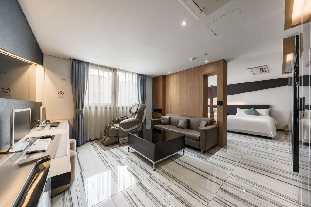 제휴점 사정으로 객실 정보가 수시로 변경될 수 있습니다. 이로 인한 불이익은 당사가 책임지지 않습니다. 전 객실 50인치 삼성 LED TV 전 객실 삼성 올인원 PC 전 객실 100% 천연라텍스 침대 전 객실 최고급 거위털 침구세트 전 객실 개별난방, 시스템에어컨 전 객실 스파욕조 or 이동식욕조 설치 욕실내 아메리칸 스탠다드 욕실제품 설치 다양한 디자인의 대리석 마감 1층, 지하 1층, 2층 주차장 장소 : 2F CAFÉ 시간 : 07:00AM 09:00AM 인원 : 1인당 8,000원 메뉴 : 세미뷔페