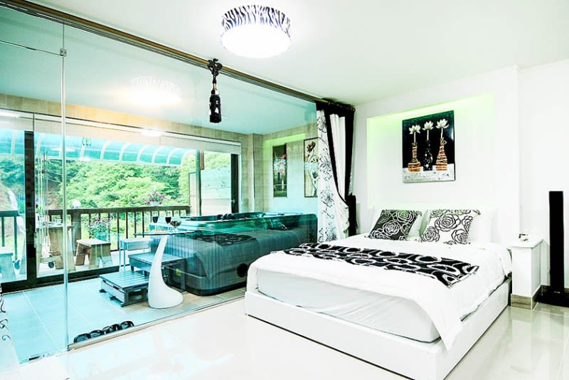 22시 이후 입실하실 경우 펜션으로 미리 연락 부탁드립니다. 전 객실 30세 이하만 예약가능합니다 전 객실 30세 이하만 예약가능합니다 예약 인원에서 인원이 추가되는 경우 펜션에 미리 연락을 주시기 바랍니다. 최대 인원 초과 시 입실이 불가능할 수 있으며, 해당 사유로 환불 받을 수 없습니다. 반려동물 입실 가능 펜션 외에 반려동물 동반 시 입실이 거부될 수 있으며, 해당 사유로 환불 받을 수 없습니다. 미성년자는 혼숙이 불가능하며, 동성일 경우 보호자 동반이나 동의가 있을 경우에만 입실이 가능합니다. 다음 이용 고객을 위해 입실, 퇴실 시간을 준수해 주시기 바랍니다. 객실 및 주변시설 이용 시 시설물의 훼손, 분실에 대한 책임은 투숙객에게 있으며, 손해배상의 책임을 질 수 있습니다. 객실의 안전과 화재예방을 위해 객실 내에서 생선이나 고기 등을 굽는 직화 방식은 허용되지 않으며, 개인적으로 준비해 오는 취사도구(그릴, 숯, 전기/전열기구 등)은 반입이 금지되어 있습니다. 객실 내에서의 흡연은 금지되어 있으며, 지정된 장소를 이용해 주시기 바랍니다. 다른 이용객에게 피해를 줄 수 있는 무분별한 오락, 음주, 고성방가는 삼가주시기 바랍니다. ※전 객실 30세 이하만 예약가능합니다. 꼭 참고 하세요. 스파/월풀 · 스파 이용 시 입욕제 사용 절대불가 개별바비큐 · 숯+그릴은 2인일 경우 1SET로 신청하면 됩니다. - 소(小)형그릴-10,000원 · 숯+그릴은 3인 또는 많은 양을 준비해 오신분은 2SET를 신청하면 됩니다. -대(大)형그릴-20,000 ※ 숯+그릴 SET는 그릴에 숯불피워 드리는 것으로 드실 식재료는 준비해 오세요.^^ 복층 바비큐장 · 숯+그릴은 2인일 경우 1SET로 신청하면 됩니다. - 소(小)형그릴-10,000원 · 숯+그릴은 3인 또는 많은 양을 준비해 오신분은 2SET를 신청하면 됩니다. -대(大)형그릴-20,000 ※ 숯+그릴 SET는 그릴에 숯불피워 드리는 것으로 드실 식재료는 준비해 오세요.^^ 카페 ★힘앤아이카페 OPEN★ 펜션 바로위에 카페를 새로 오픈했습니다. 힘앤아이카페 아침에 브런치도 드실수 있으며, 전망좋고 인테리어도 정말 예뻐요. 펜션에서 숙박하면 할인도 해드립니다. 네이버에서 힘앤아이카페 검색해보시면 홈페이지도 접속 가능합니다. 이벤트가능 -파리바게뜨커플케잌(초포함) - 20,000원 · 레드와인- 15,000원 스파클링와인-20,000원 · 세트1- 케익(파리바게뜨커플케익초포함)+와인(레드와인)+테이블세팅 -35,000원 · 세트2- 케익(파리바게뜨커플케익초포함)+와인(스파클링와인)+테이블세팅-40,000원 · 펜션측으로 사전 예약 부탁드립니다. 주차가능