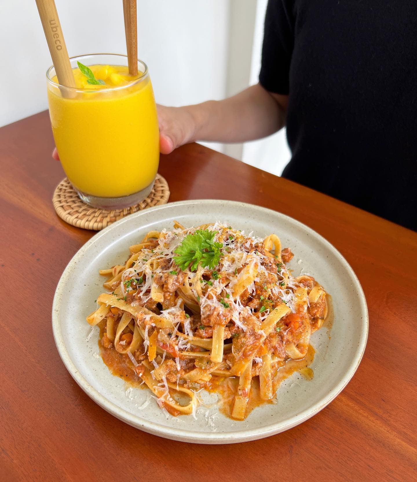 납작한 모양의 파스타 면 '페투치니 면'에 고기, 치즈, 토마토 소스 등을 곁들여 볶아낸 파스타
