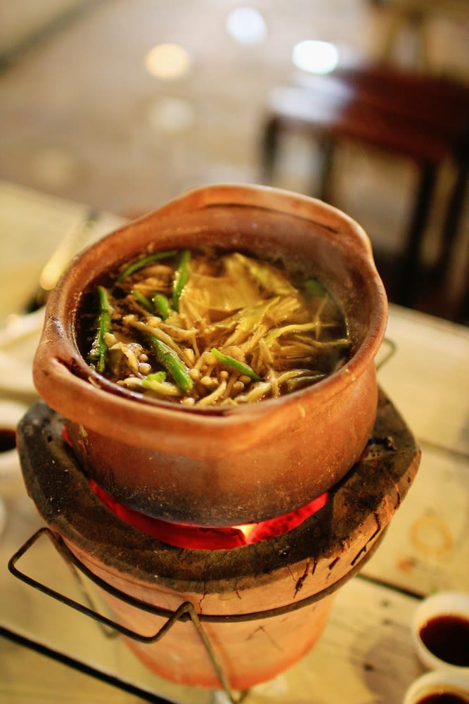 항아리 모양의 냄비를 사용하는 태국식 샤부샤부 전문점